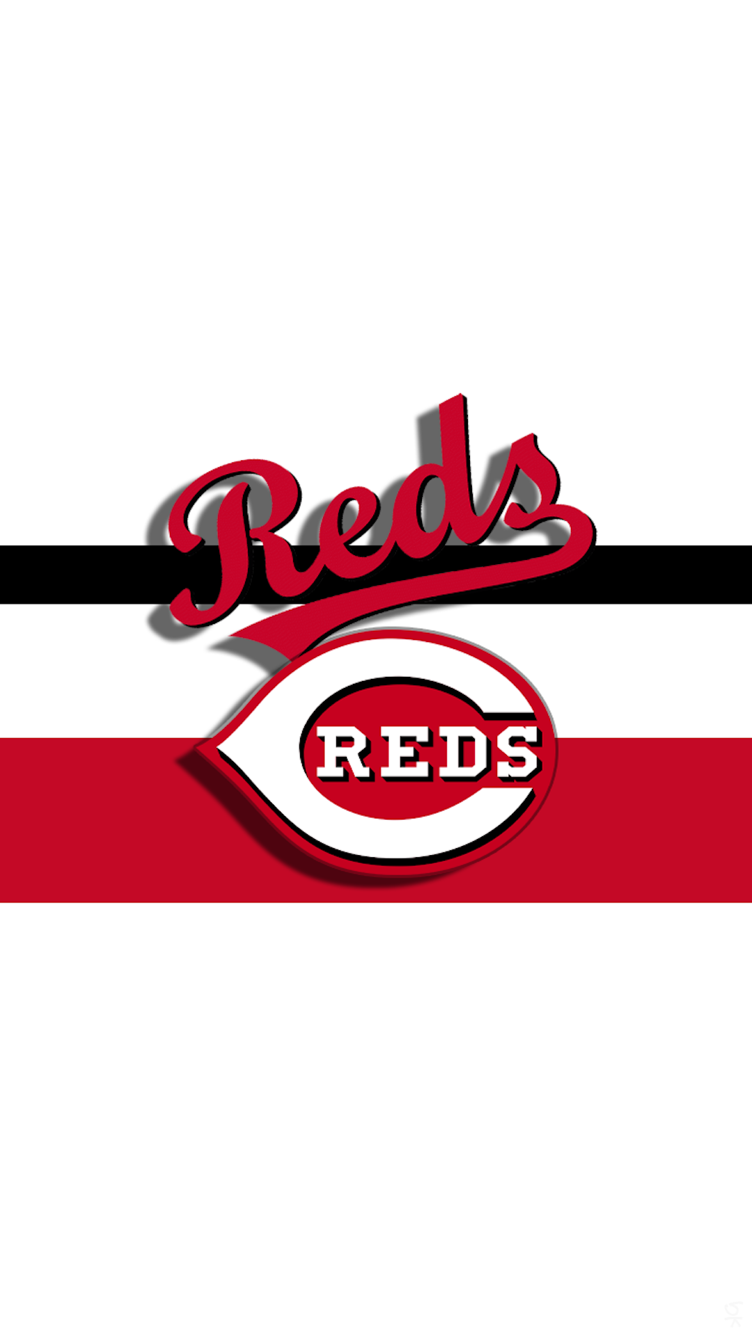 Description: A red and black striped background with the word reds on it and a football logo on the bottom of the image.