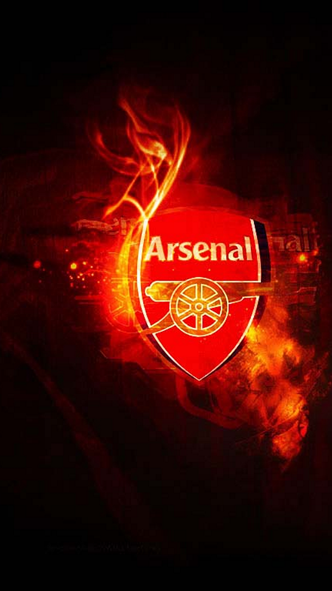 Description: A red and black wall with a red and white logo on it and a red fire behind it and a black background.
