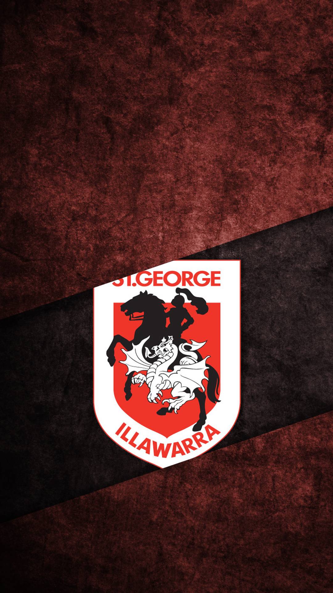 Description: A red and black wall with a white and black logo on it and a black and red stripe on the bottom.
