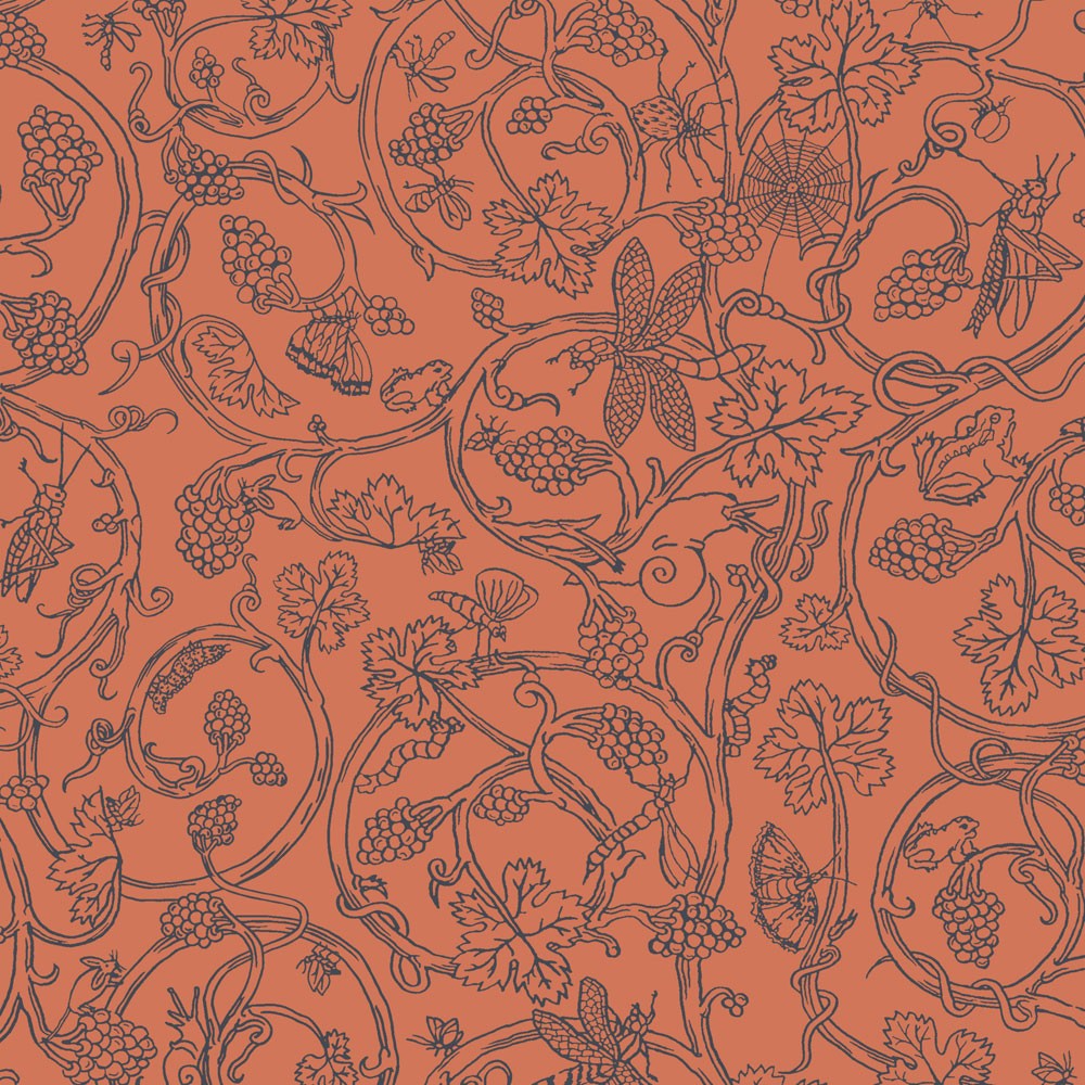 Description: A red and black wallpaper with a pattern of flowers and vines on it's side.
