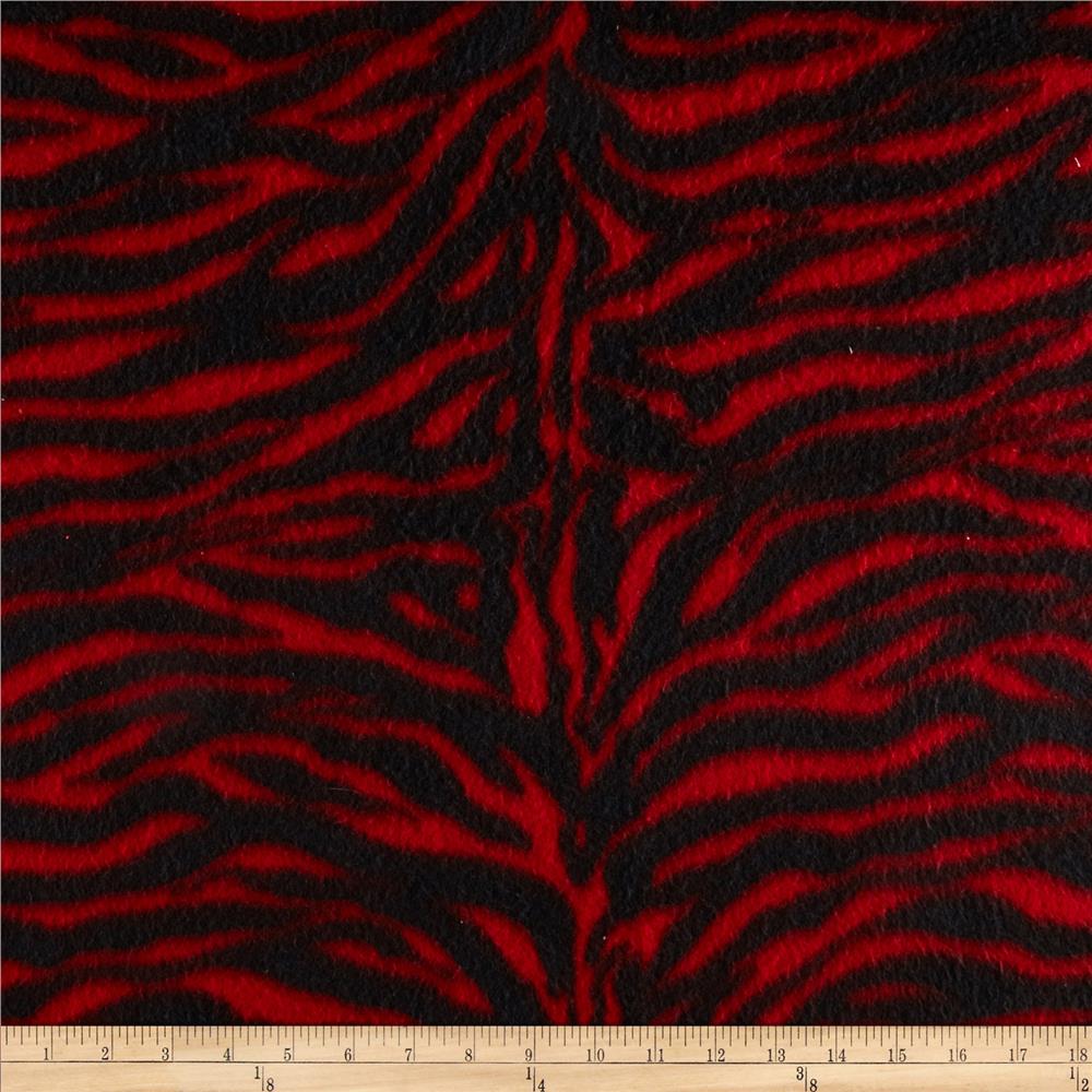 Description: A red and black zebra print fabric with a ruler on it's side.