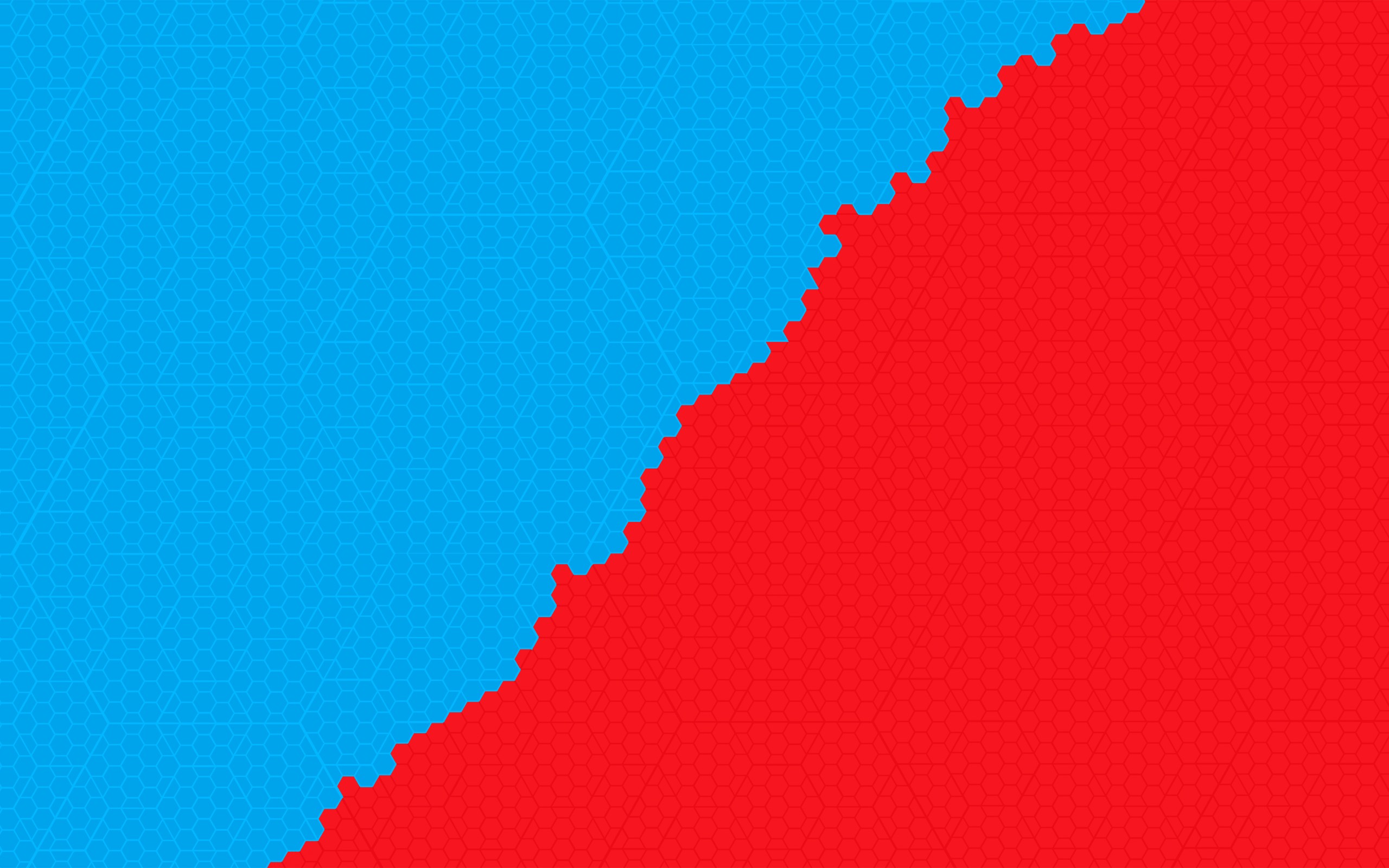 Description: A red and blue background with a blue triangle in the middle of it and a red triangle in the middle of the bottom.