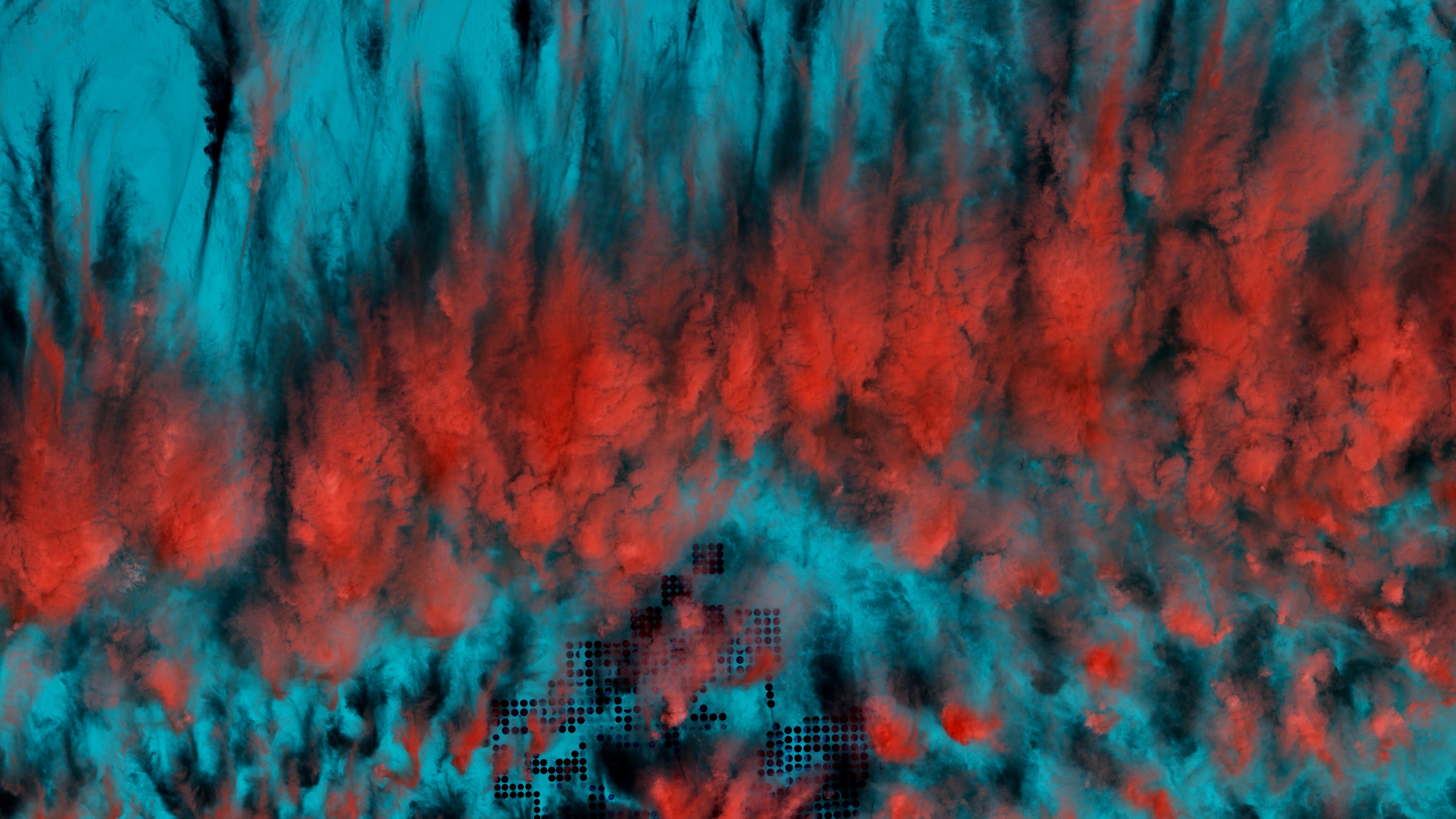 Description: A red and blue background with a black and white design on it and a black and red design on the bottom.