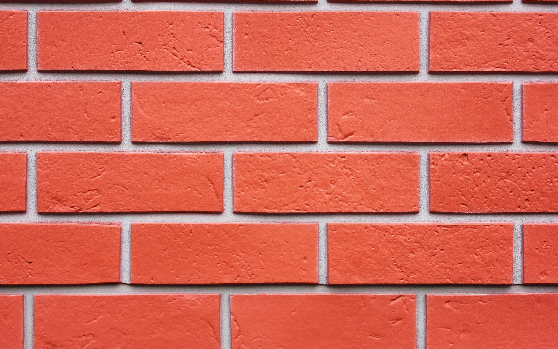 Description: A red brick wall with a white background and a red clock on it's side of it's face.