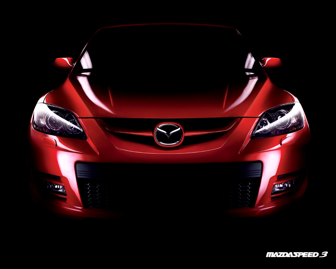 Description: A red car is shown in the dark with its hood up and lights on it's headlight.