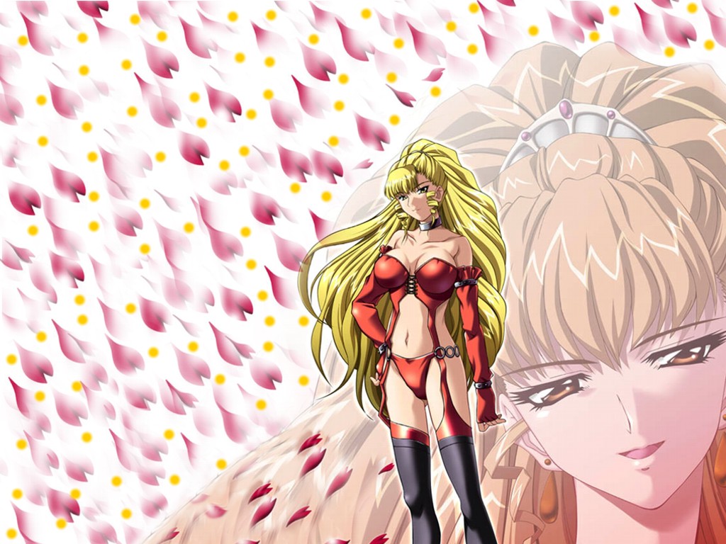 Description: A woman in a red dress and a man in a red suit and a red and white background with pink flowers.