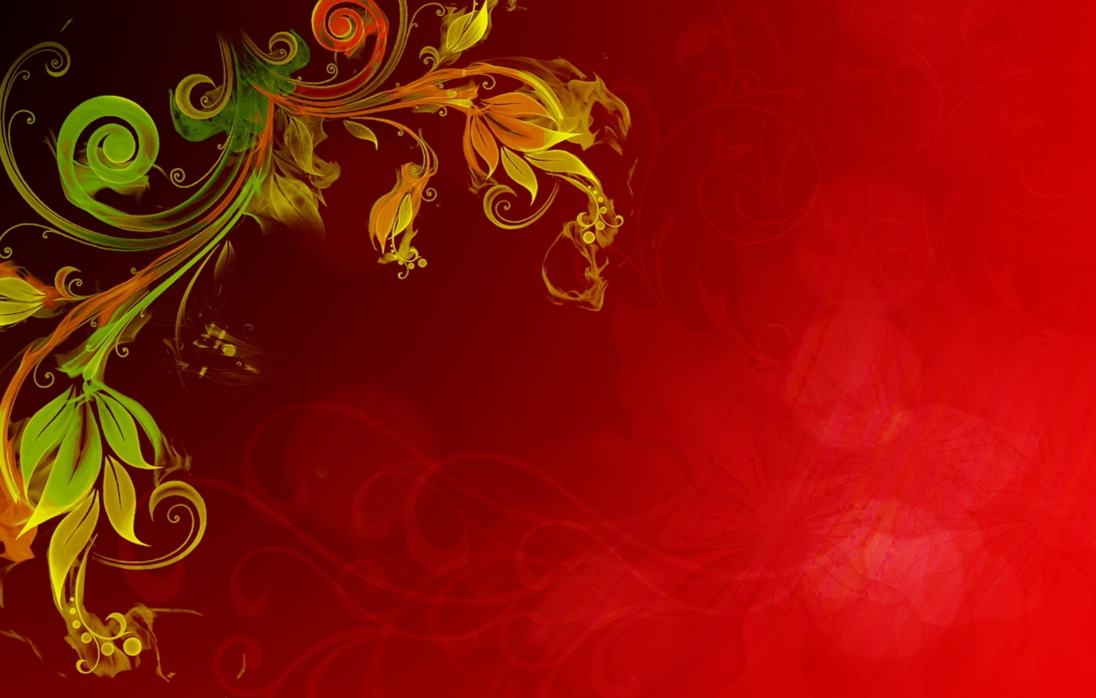 Description: A red background with a yellow and green floral design on it's side and a red background with a yellow and green flower design on the side.