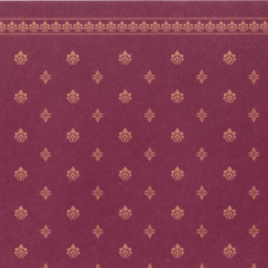 Description: A red and gold patterned cloth with a border of small flowers and leaves on it.