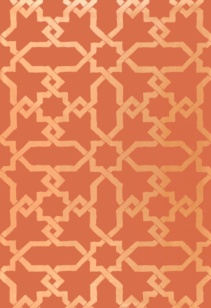 Description: A red and gold pattern with a white background and a gold border on the bottom of the pattern is a square shape.