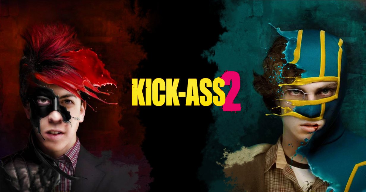 Description: Two people with different colored hair and makeup on their faces and one has a mask on his face and the other has a face painted with a yellow and blue.