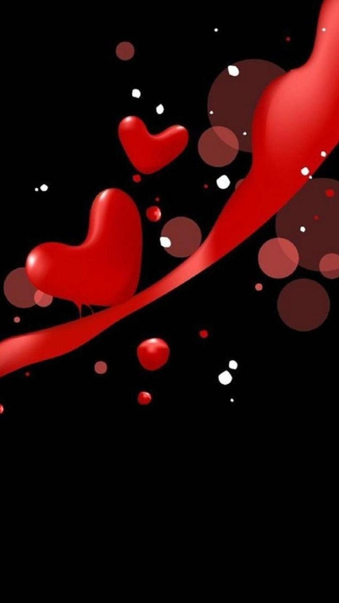 Description: A red heart on a black background with bubbles and bubbles in the air.