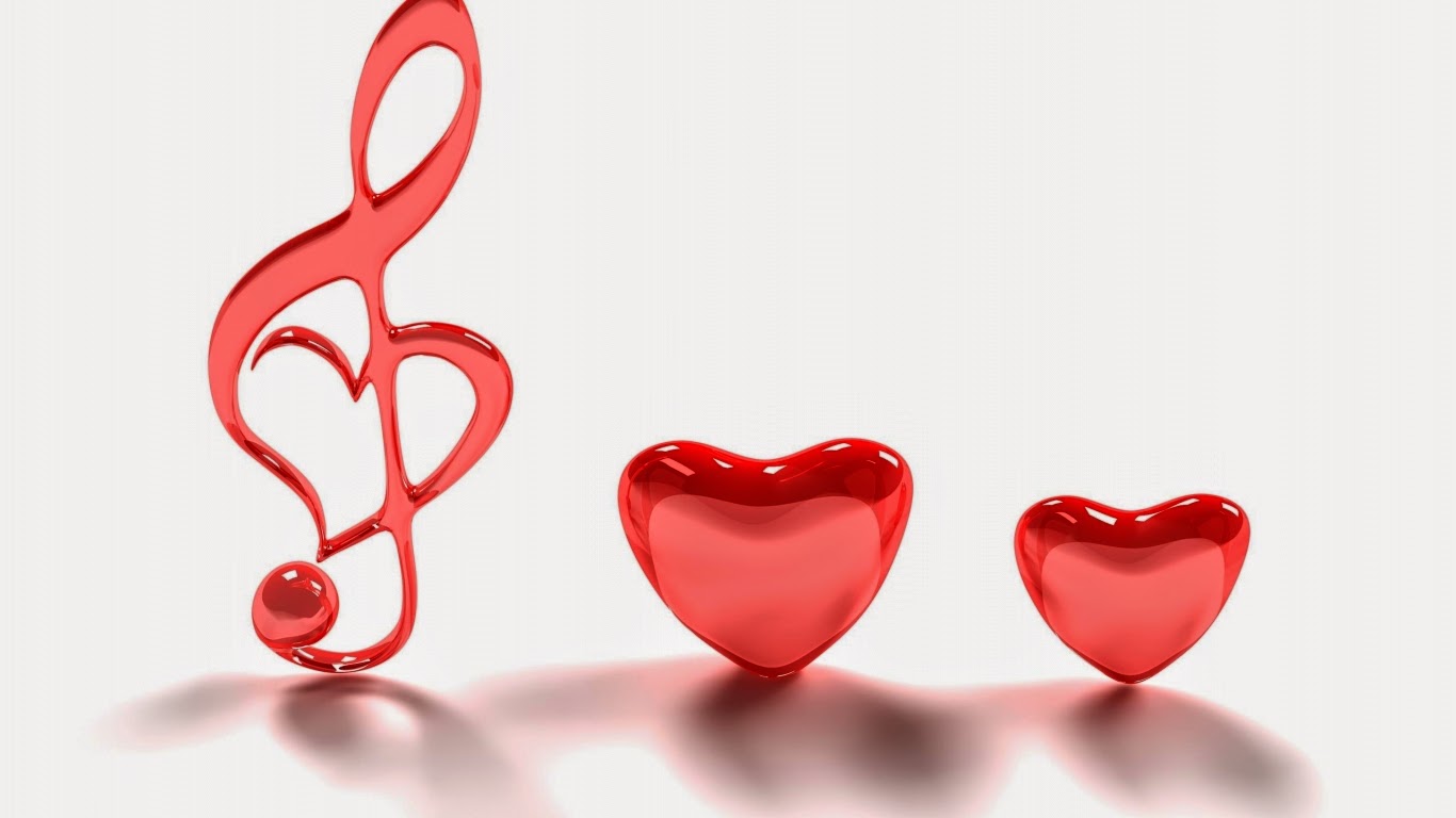 Description: A red heart shaped object next to a musical note on a white background with a shadow of a heart.