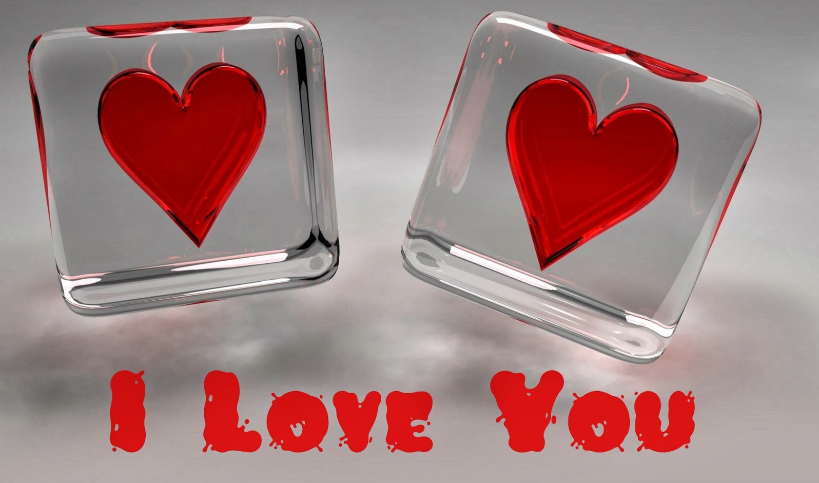 Description: A couple of red hearts sitting on top of a glass block with the words i love you written on it.