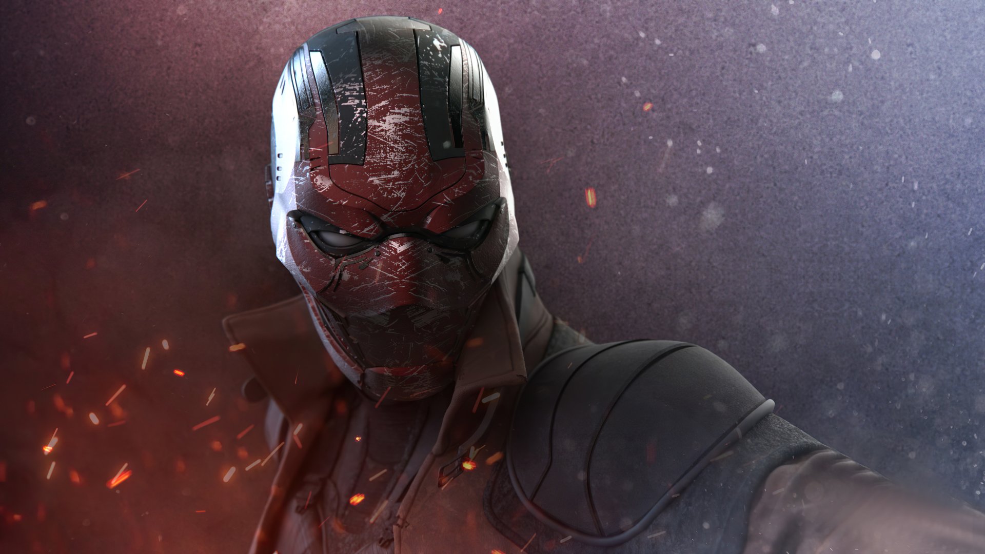 Description: A man in a suit with a red light behind him and a red light behind him.