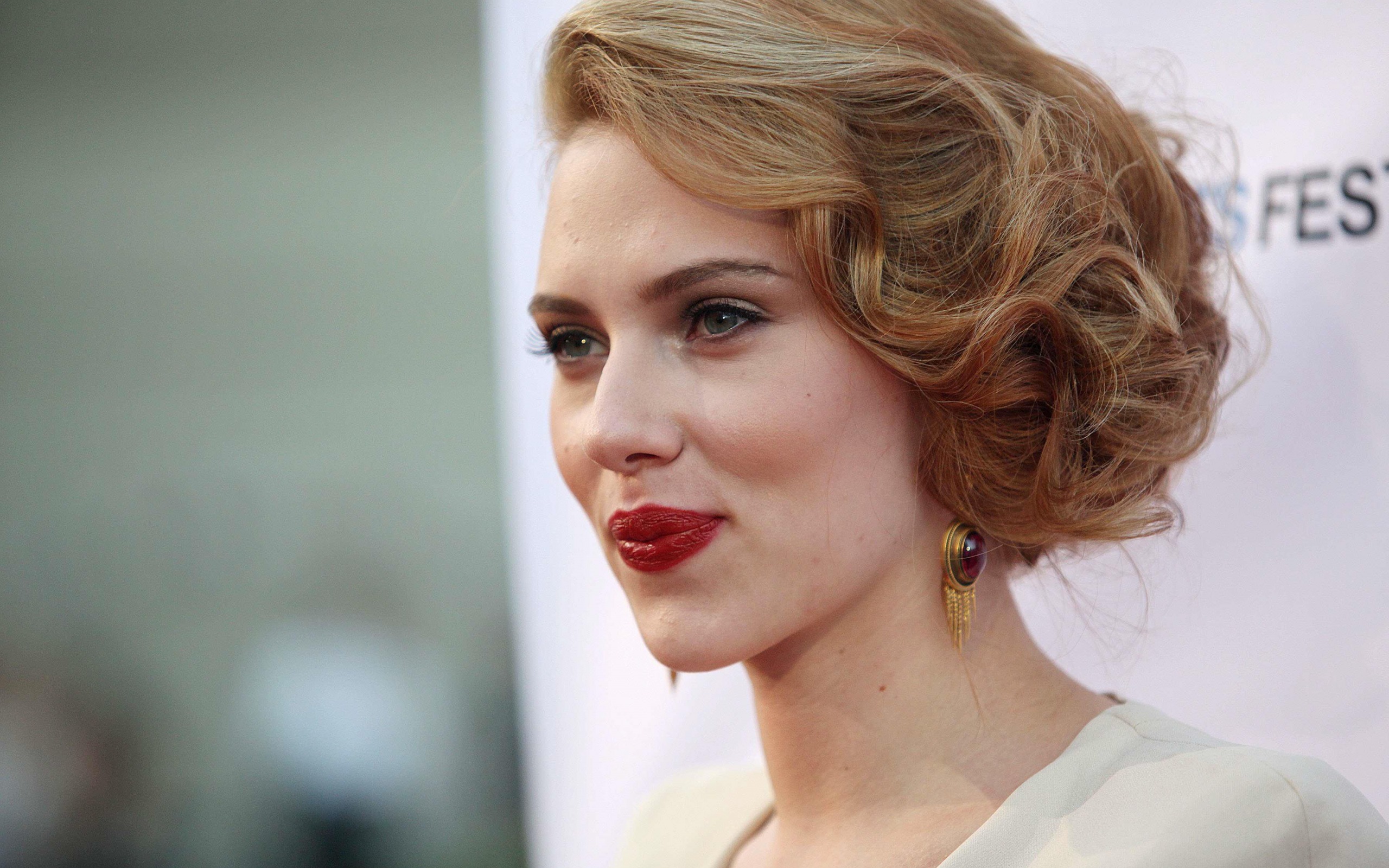 Description: A woman with a red lipstick on her lips and a white dress on the red carpet of a festival.