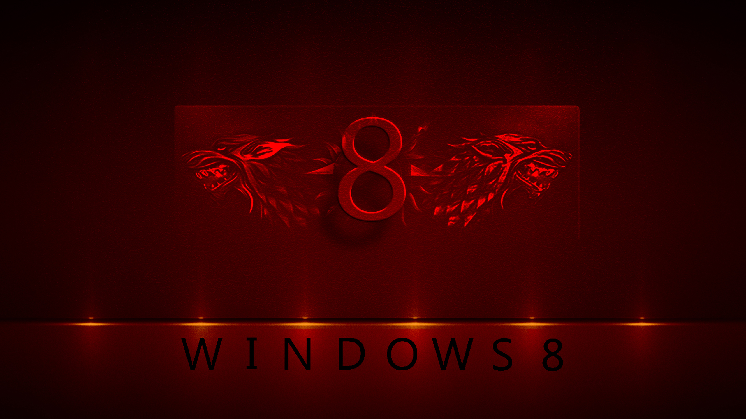 Description: A red neon sign with a pair of scissors on it's side and a window 8 logo on the wall.