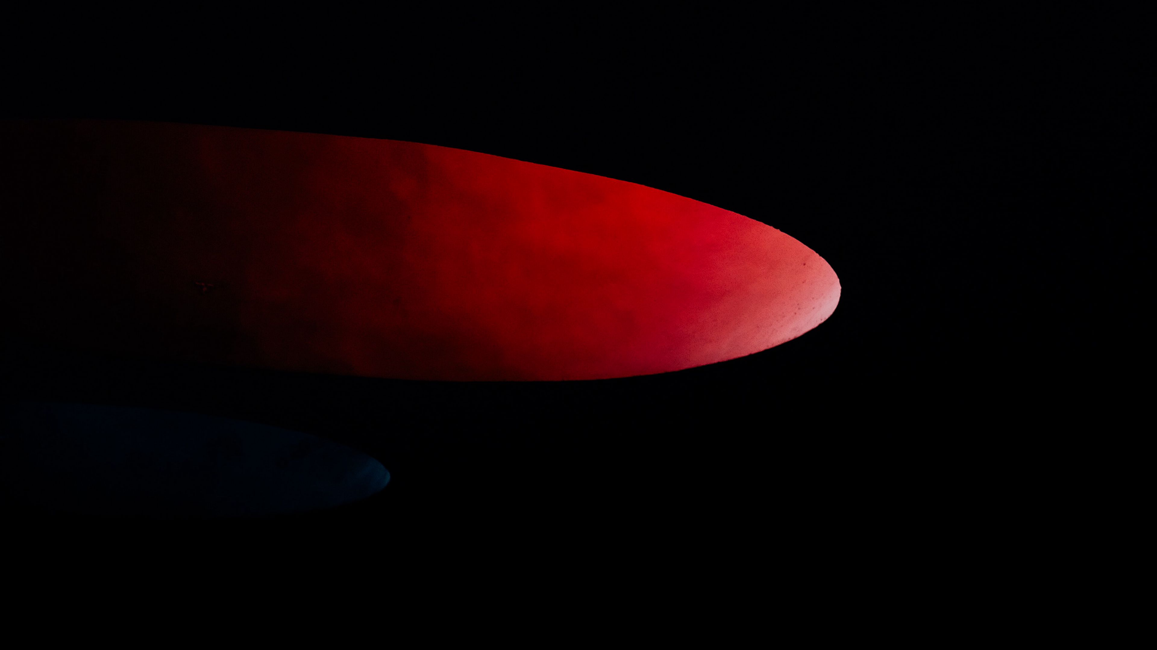 Description: A red object is shown in the dark sky with a black background and a black background with a red object.