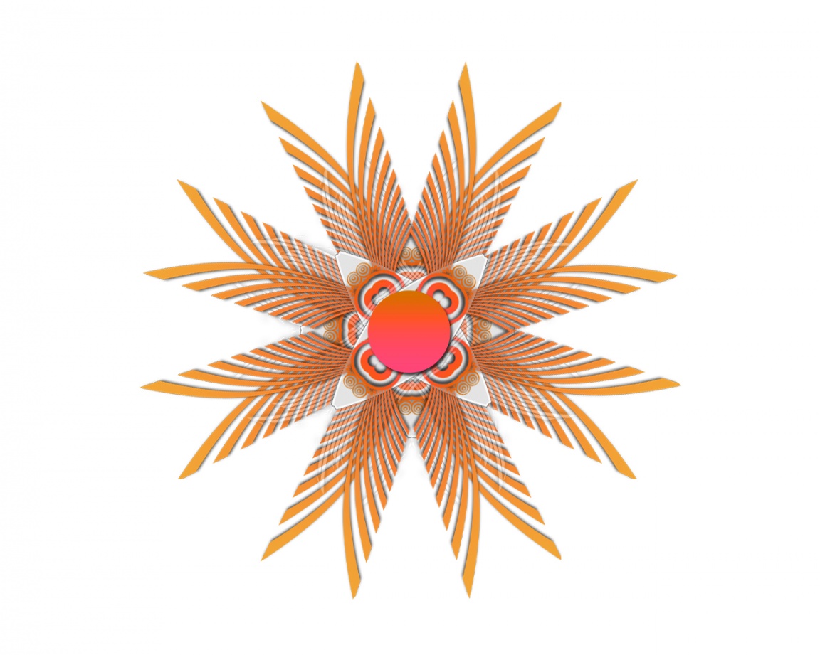 Description: A red and orange flower with a white background and a red center surrounded by orange leaves and a red circle.