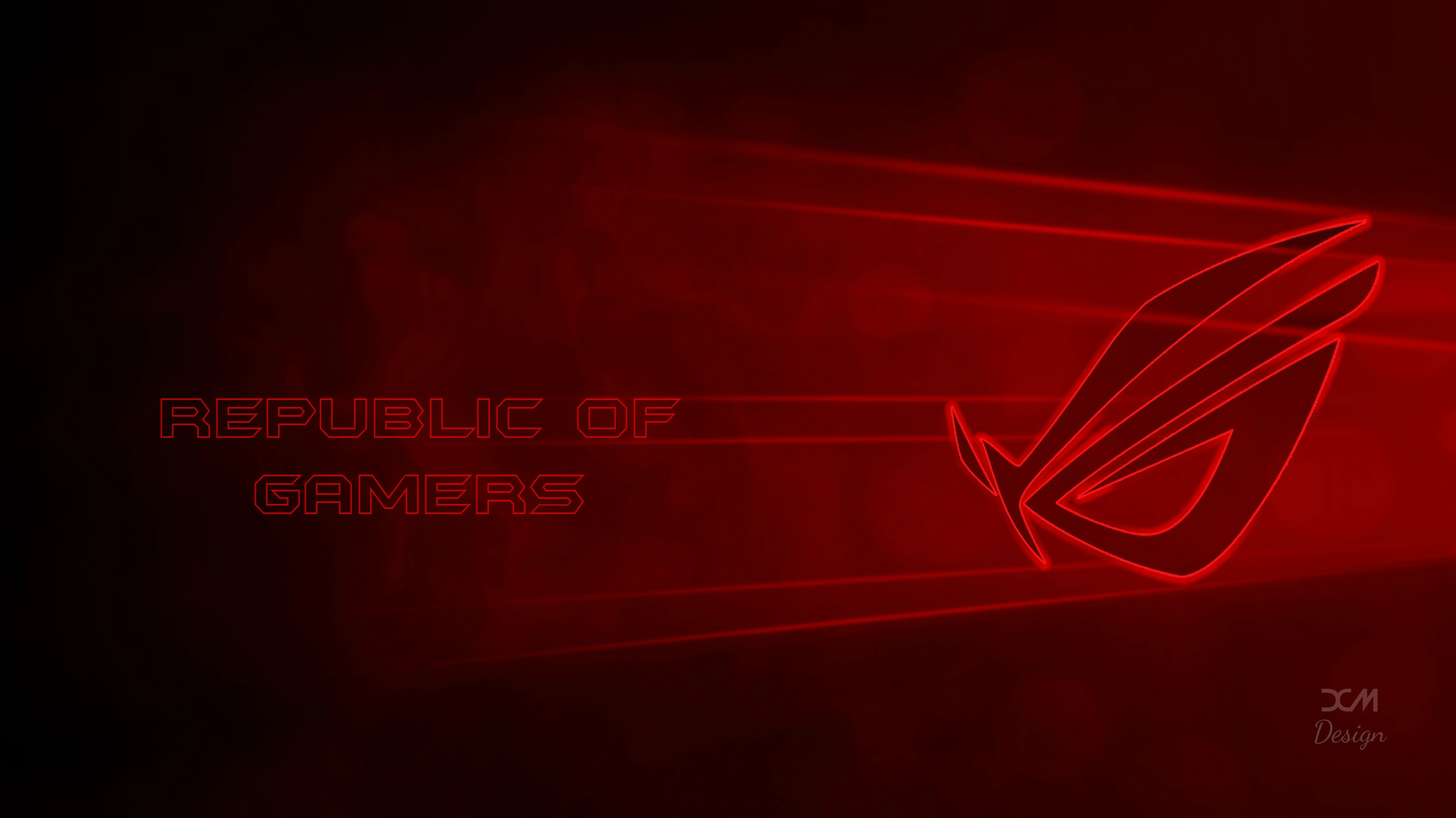 Description: A red wallpaper with the word republic of gamer on it and a red background with a red arrow.