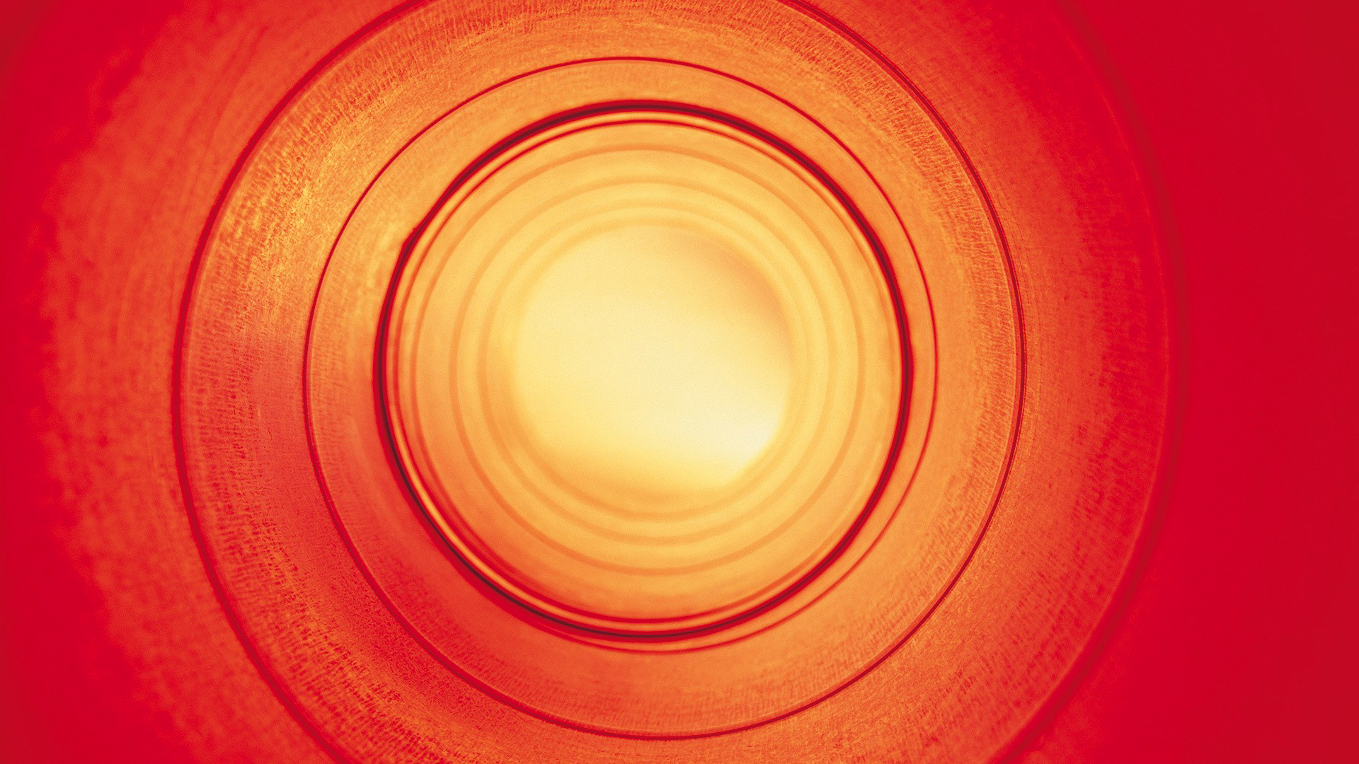 Description: A close up of a light in a red room with a red background and a circular light in the center.