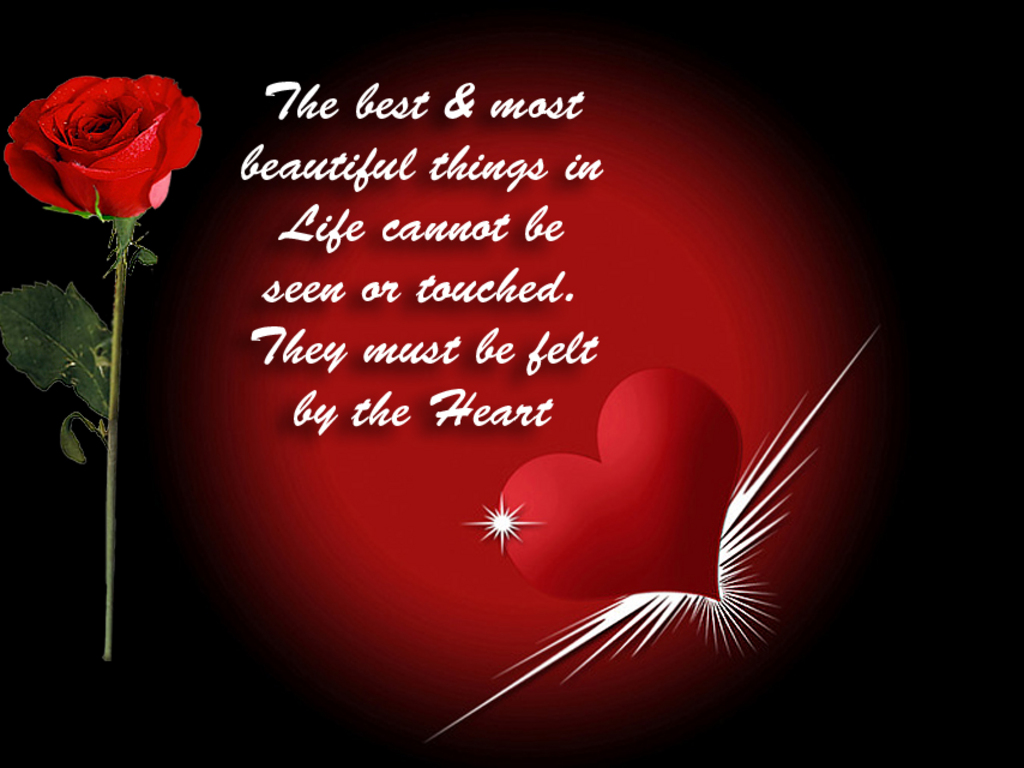 Description: A red rose and a heart on a black background with a quote from the heart on it that says.