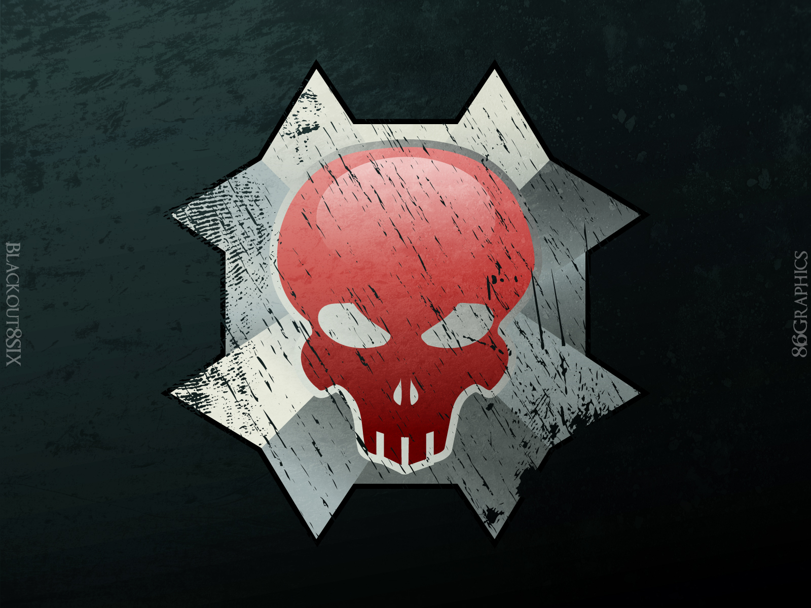 Description: A red skull with a white skull on it's face and a black background with a white star.