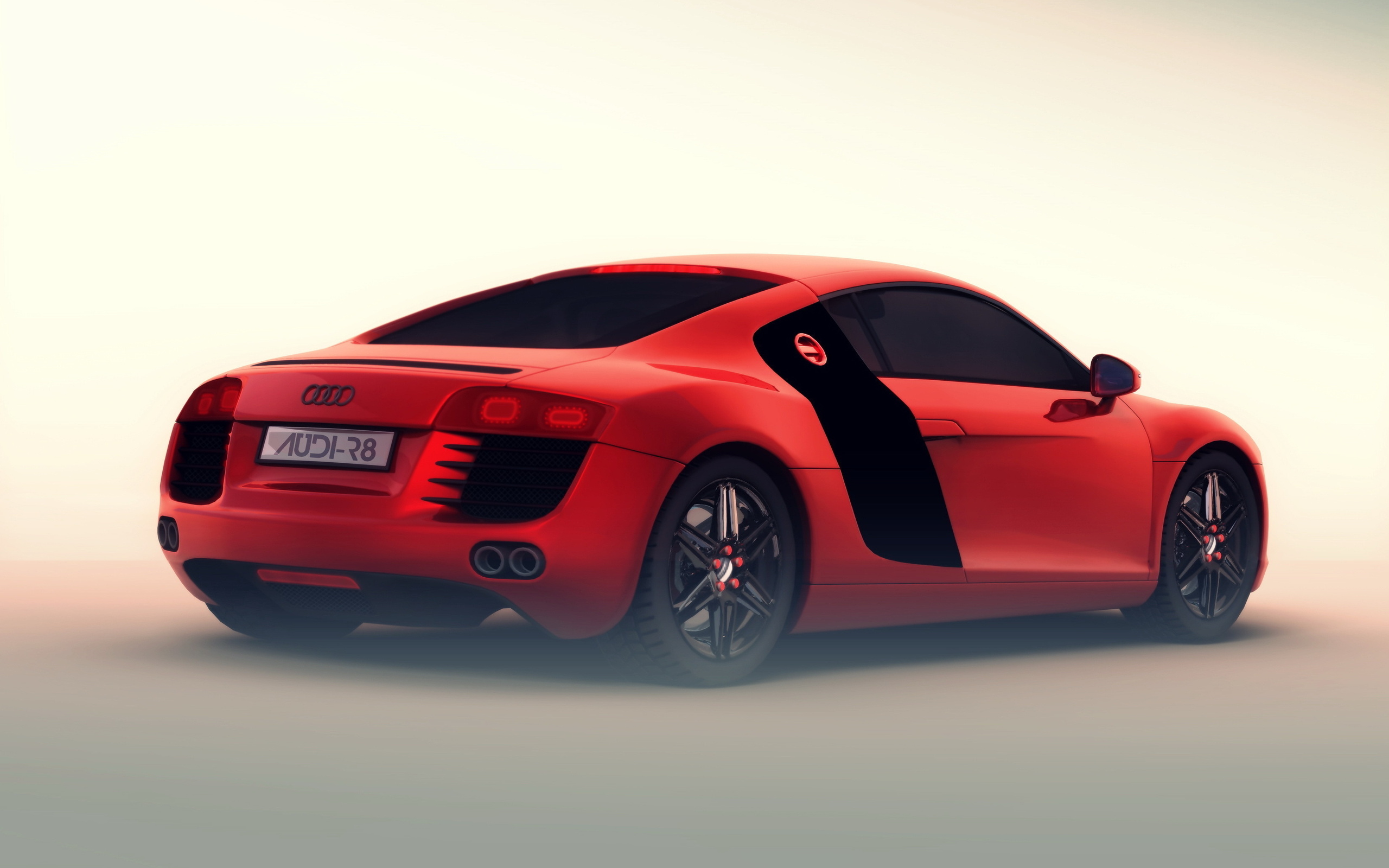 Description: A red sports car with a black stripe on the side of it's body and a white background.