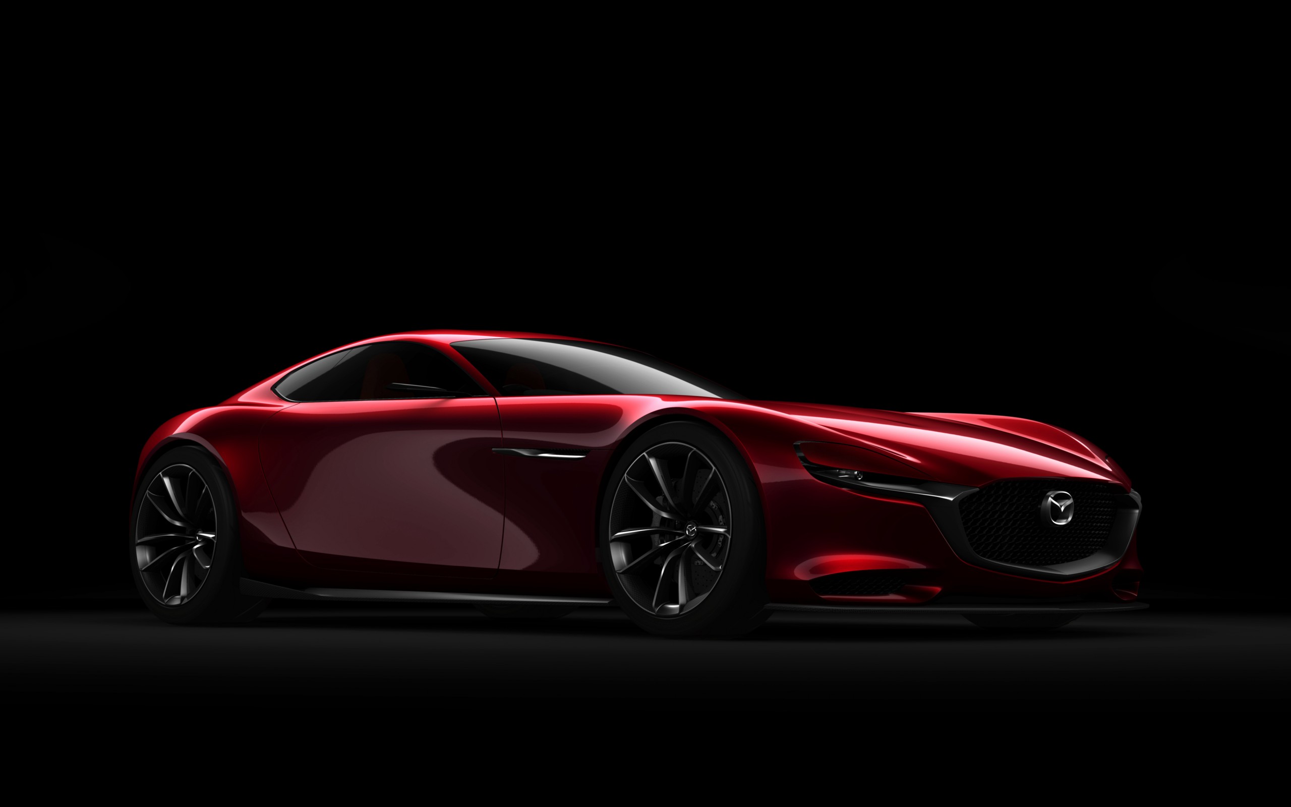 Description: A red sports car in a dark room with a black background and a black background behind it is a black background.