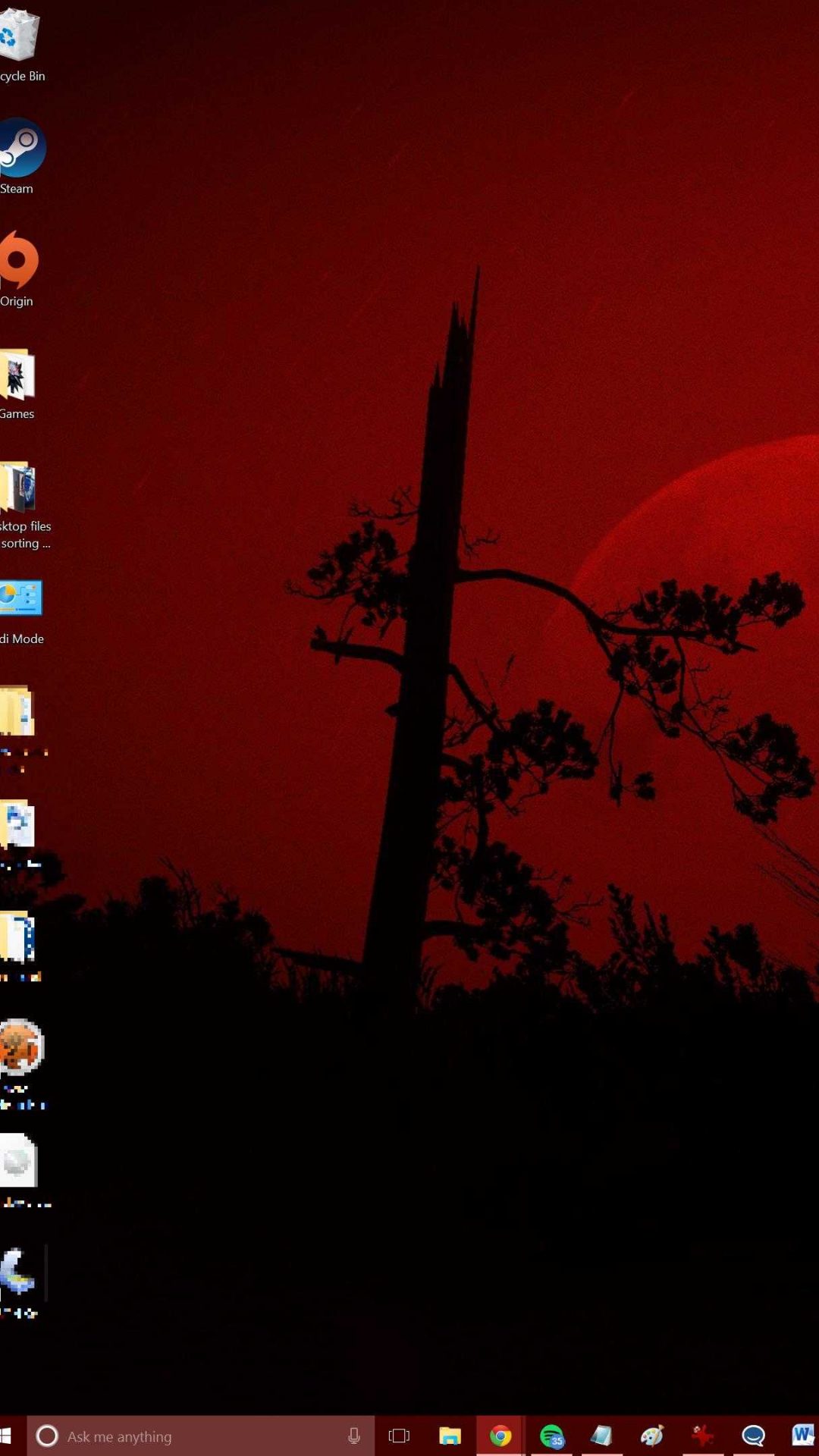 Description: A red sunset with a tree and a red moon in the background with a red sky and a red moon.