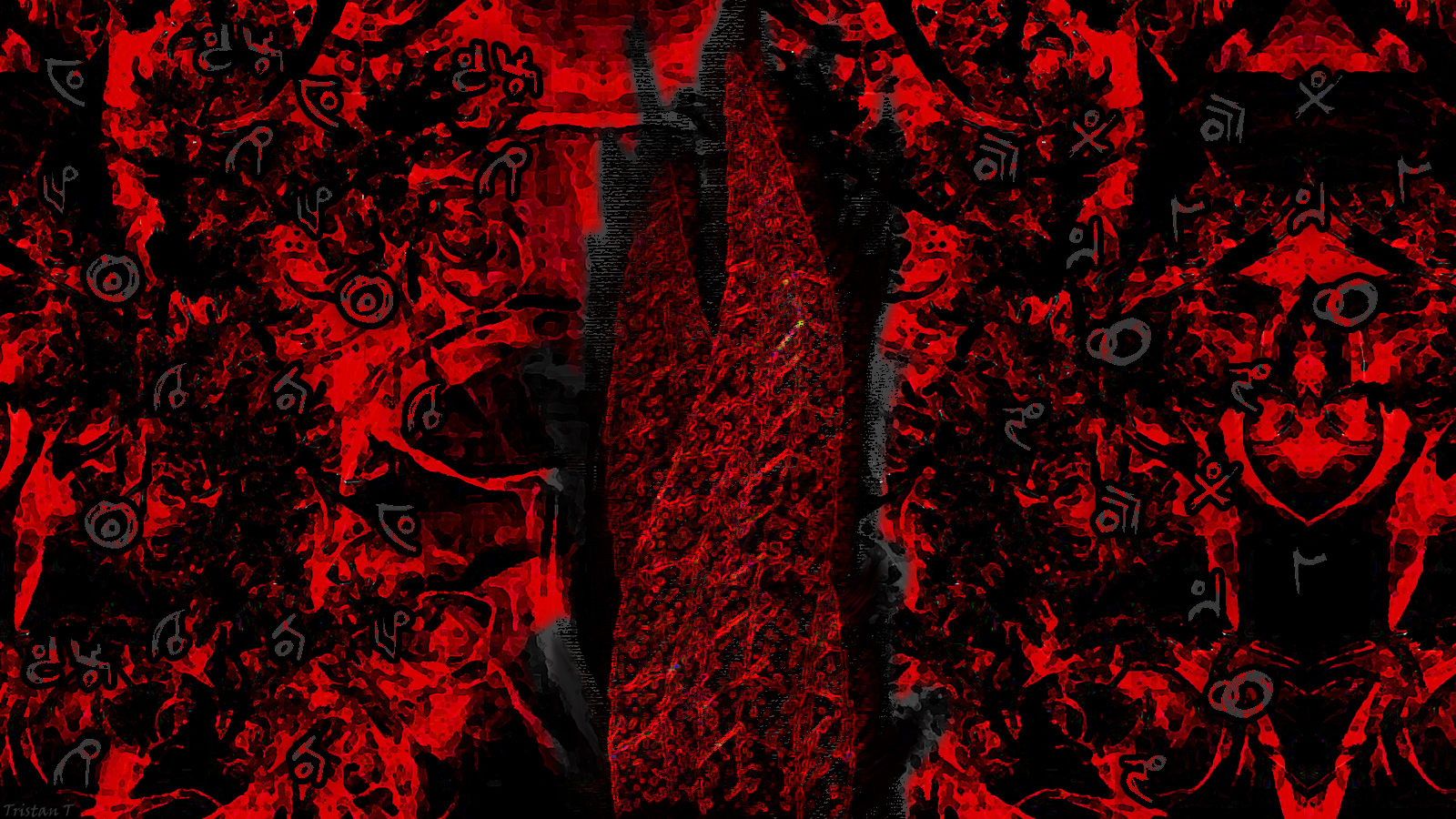 Description: A red tie is in a black and red background with a black and white design on it and a red background with a black and white design.