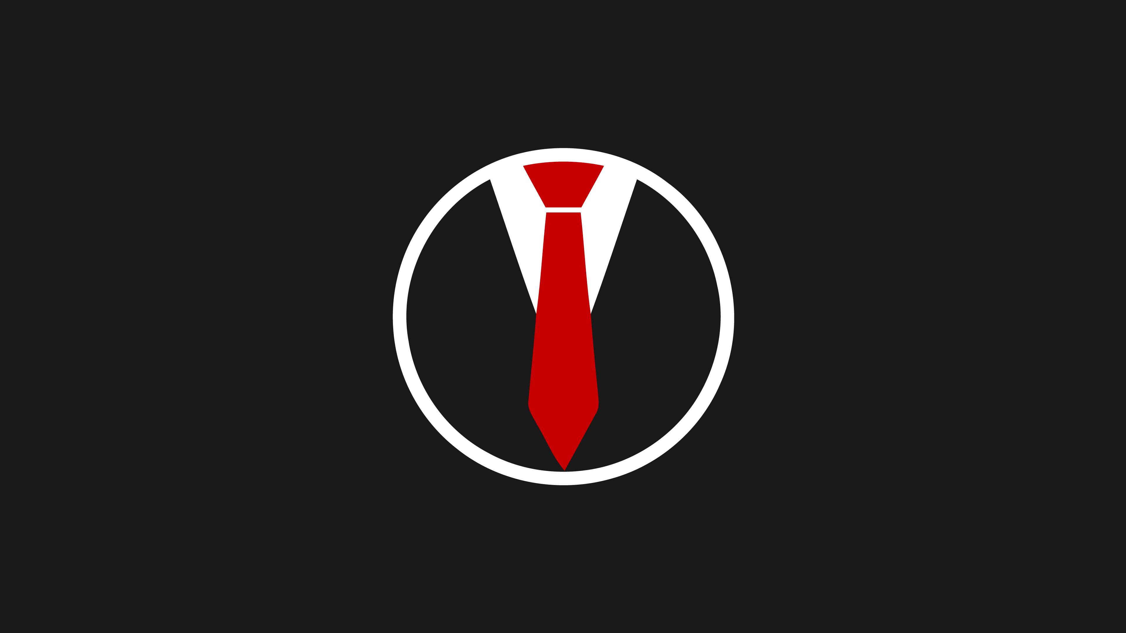 Description: A red tie is in a white circle on a black background with a white circle around it that says.