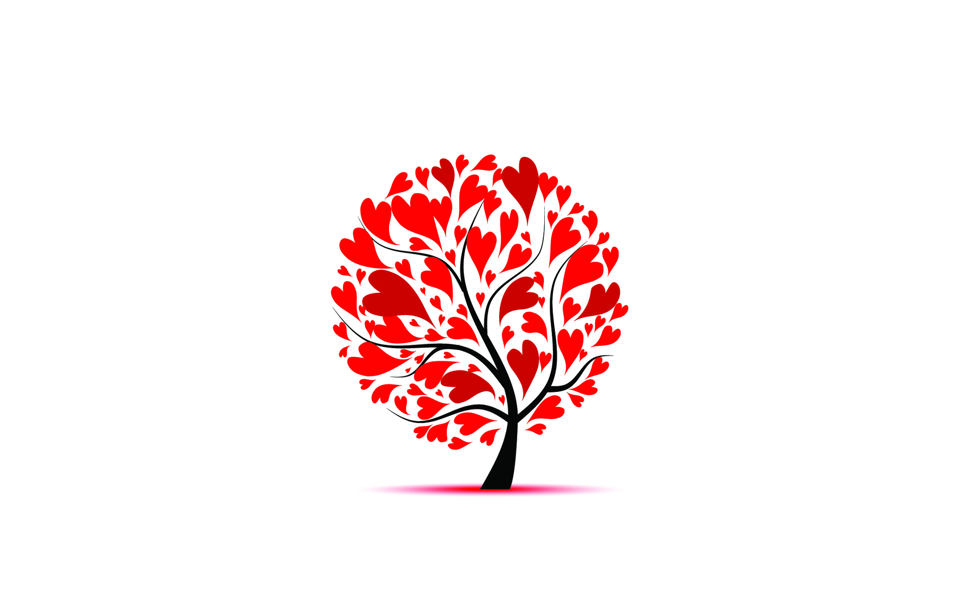 Description: A red tree with leaves on a white background is shown in the shape of a heart.