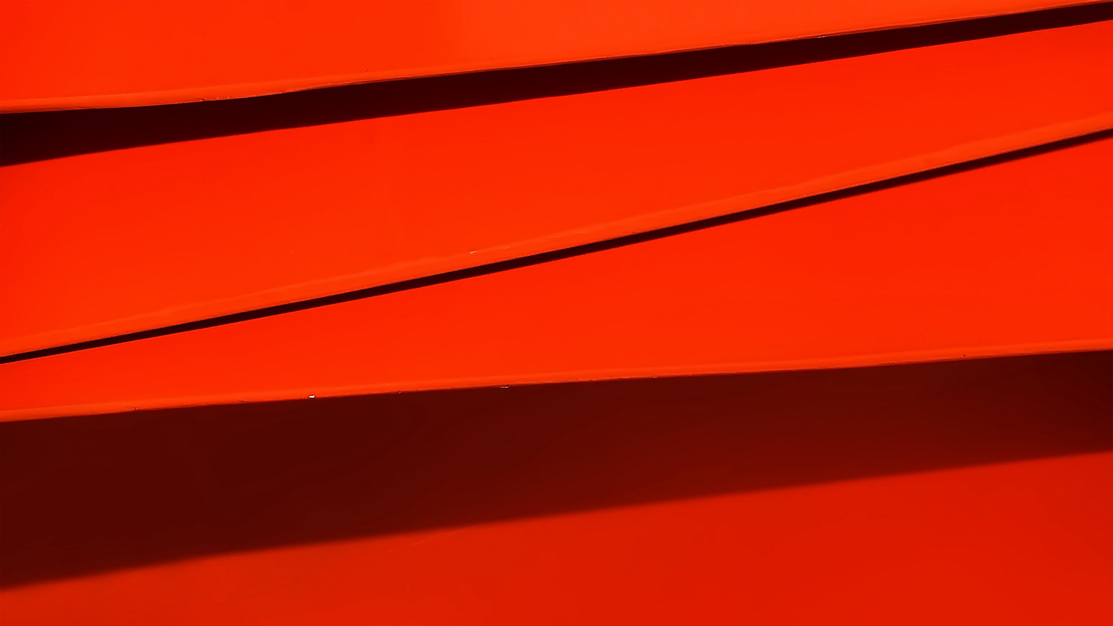 Description: A close up of a red wall with a black cat on it's back end and a black cat on the top of the wall.