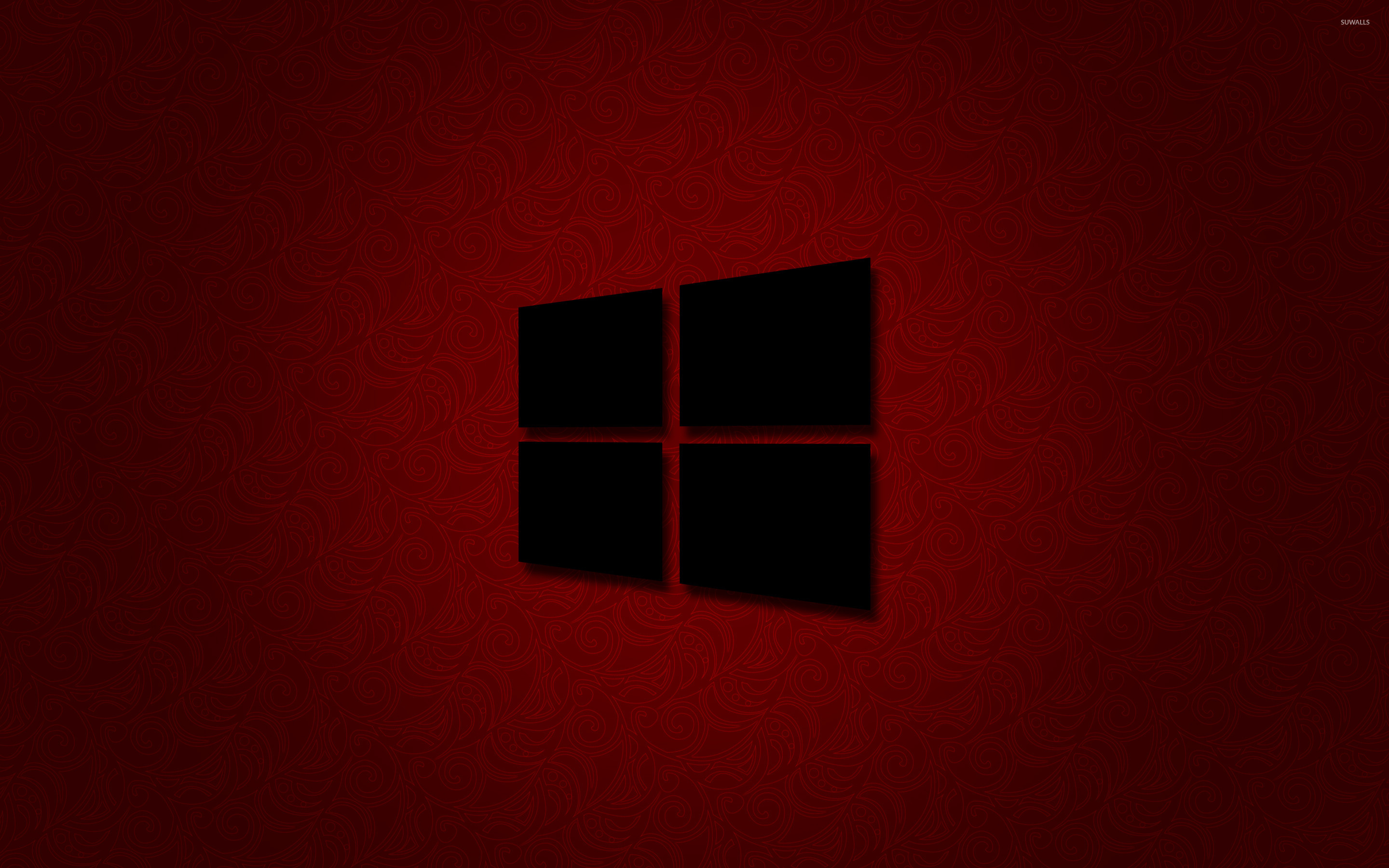 Description: A red wall with a black window on it and a red wall behind it with a red wallpaper.