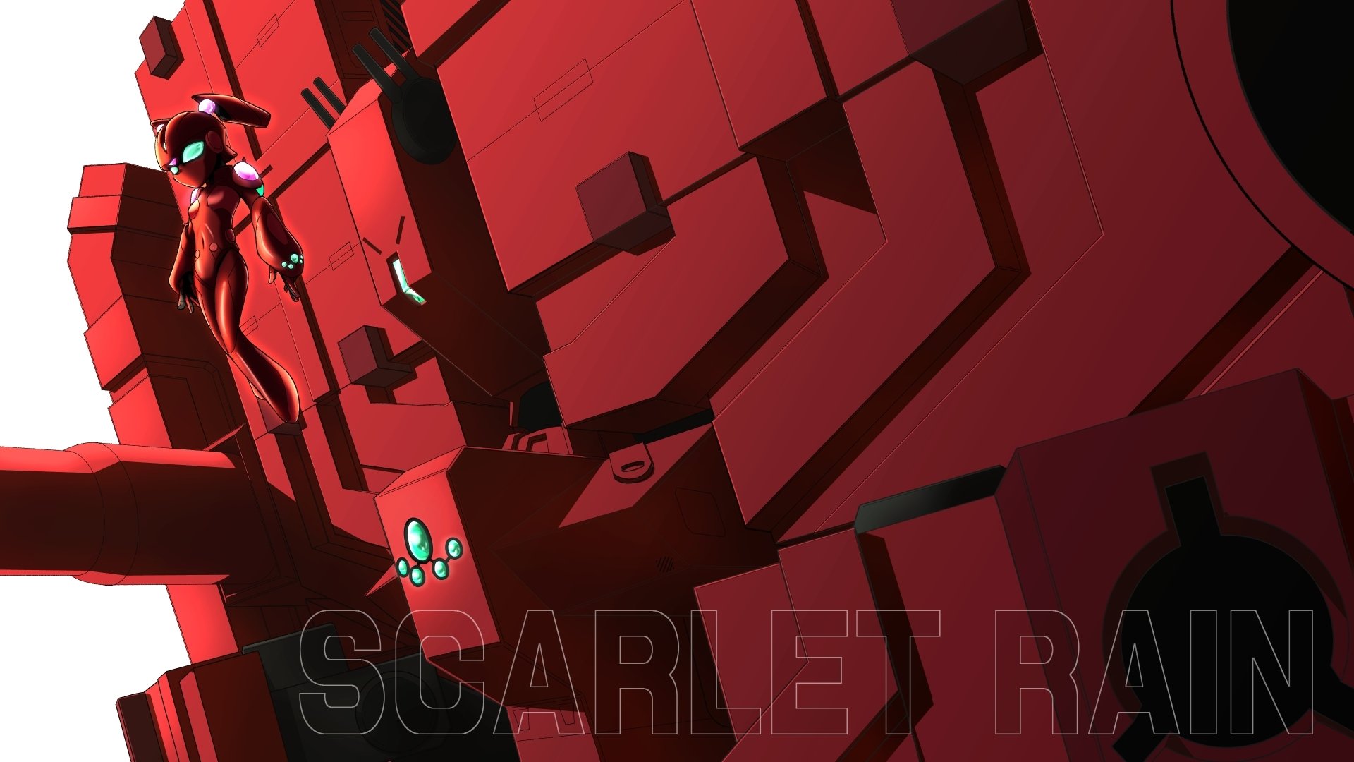 Description: A red wall with a man standing on it and a red clock on it's side and a red wall with a red clock on it.