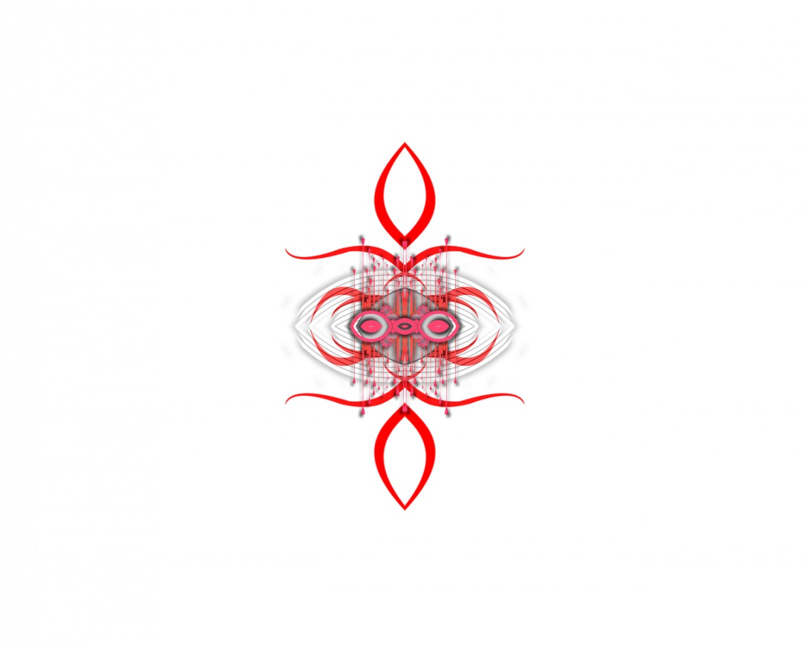 Description: A red and white abstract design on a white background with a red and white design on the bottom of the image.