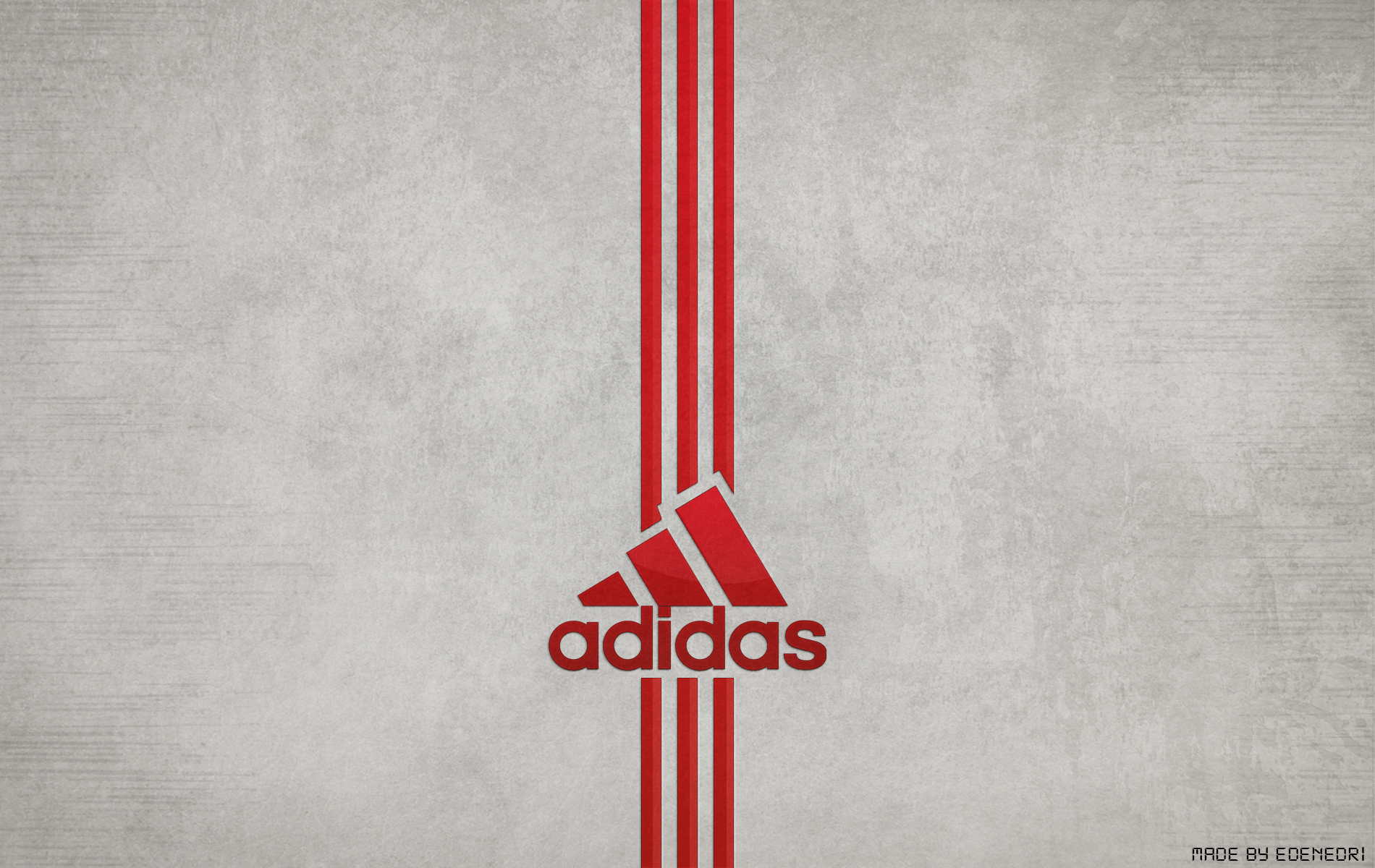 Description: A red and white adidas logo on a gray background with a red stripe on the bottom of the logo.