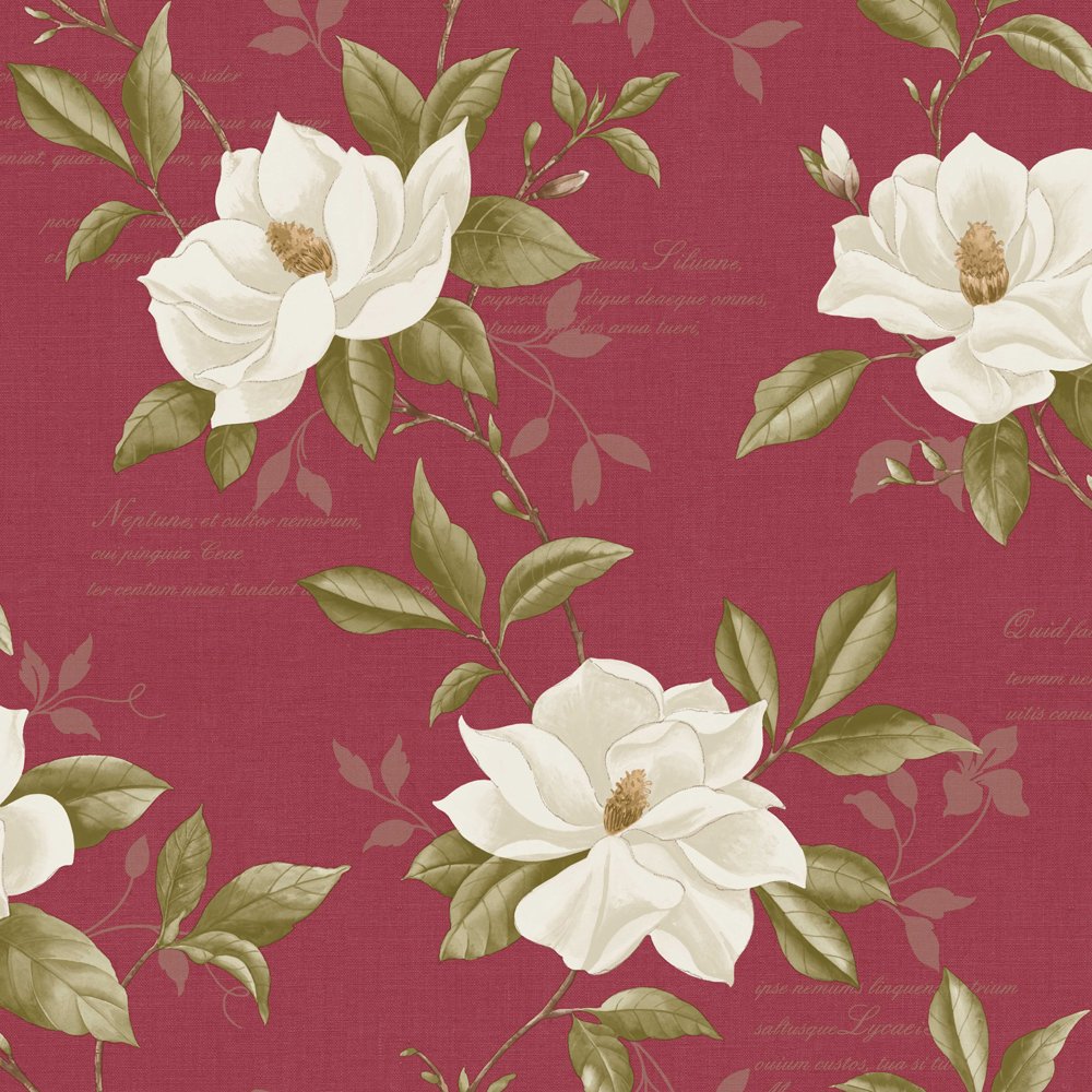 Description: A red and white flower pattern with leaves and flowers on it's side.