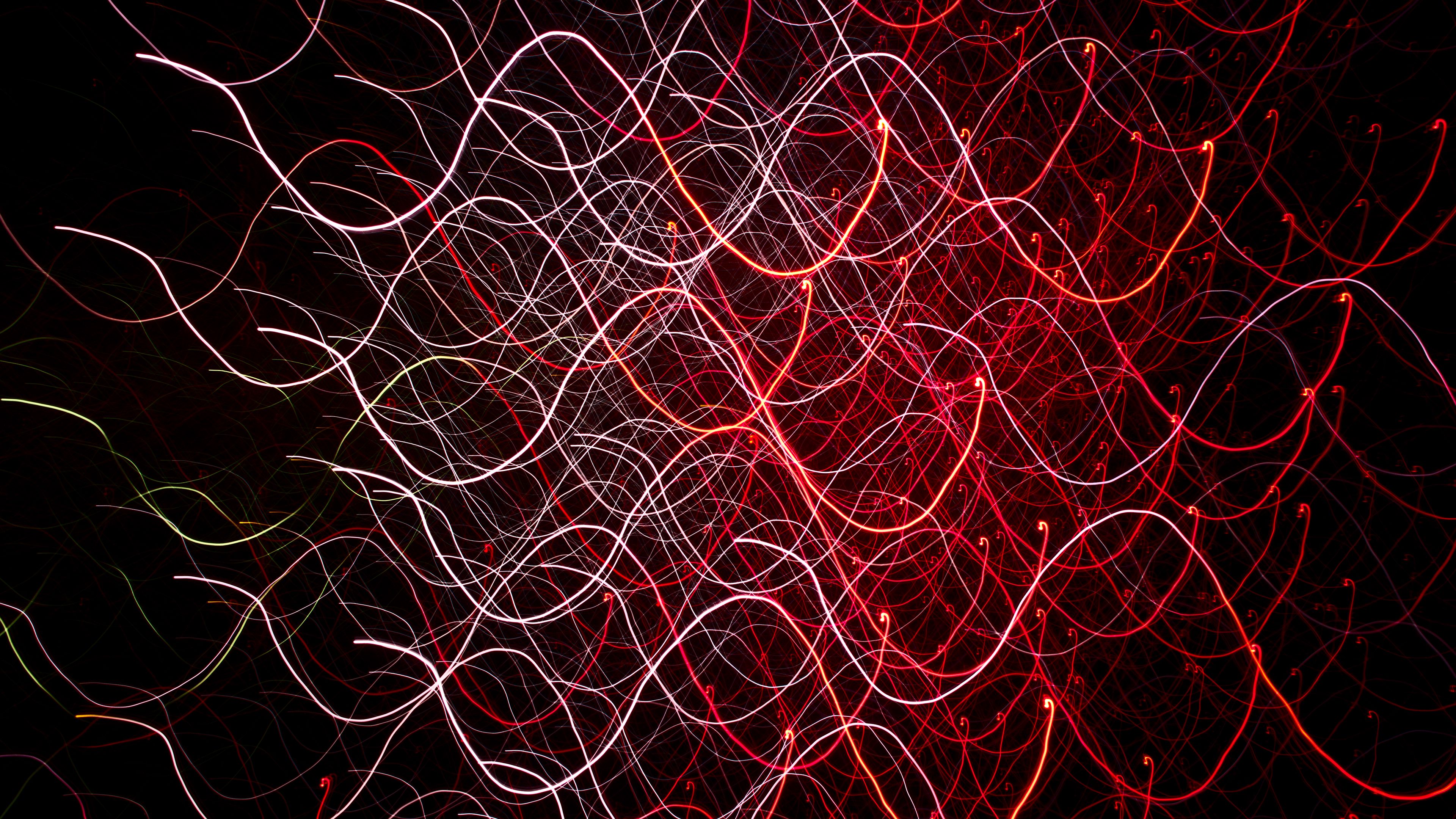 Description: A red and white light is shining on a black background with a pattern of lines and circles in the middle.