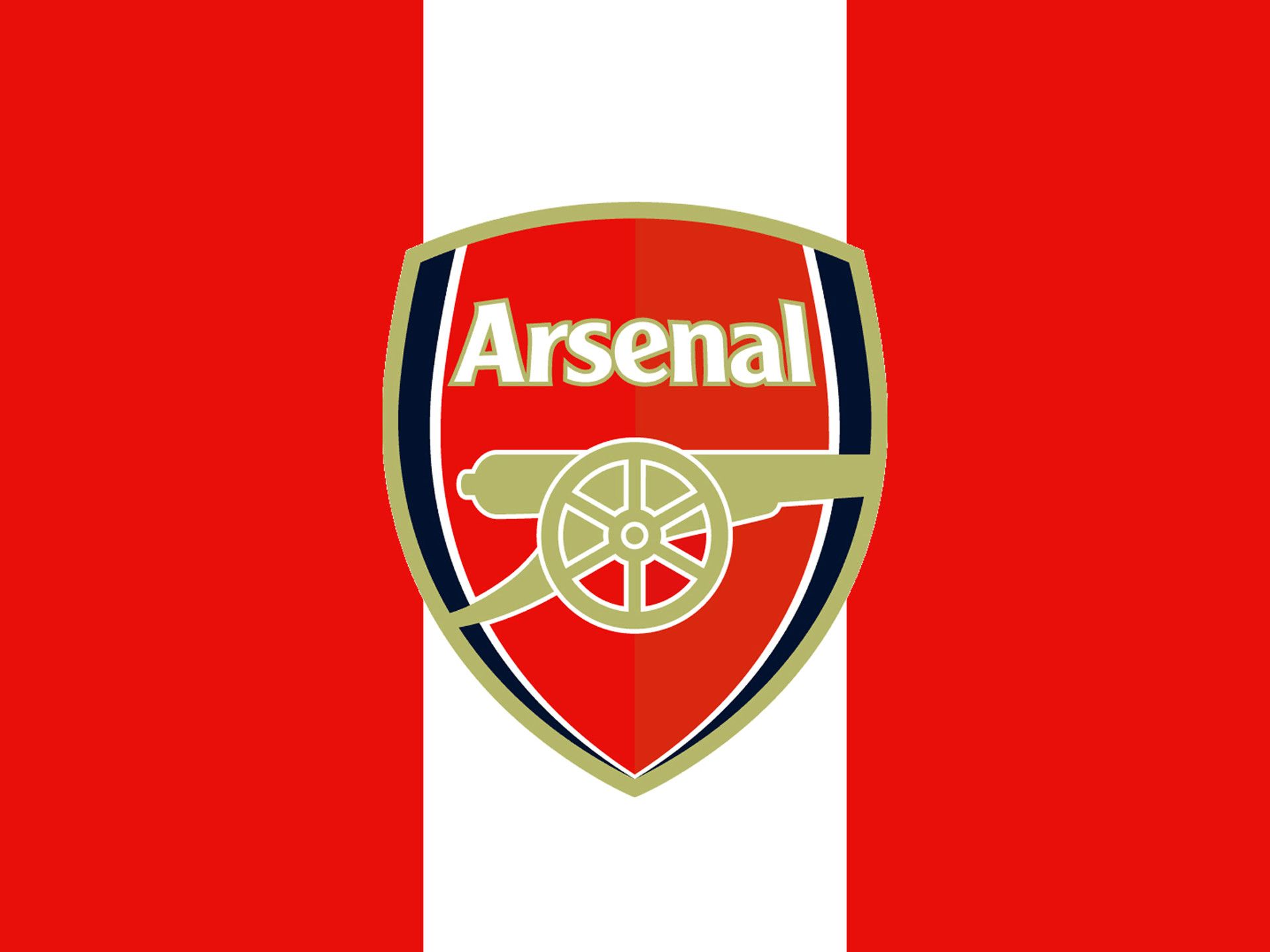 Description: A red and white striped flag with a red and white shield with the word arsenal on it.