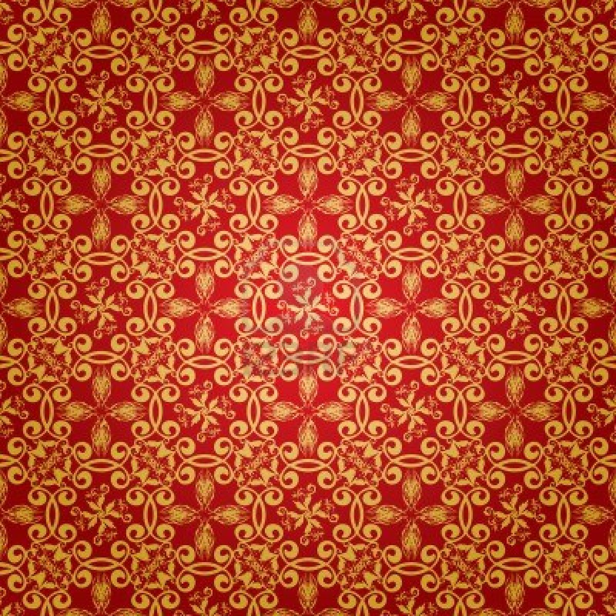 Description: A red and yellow background with a circular design on it's center and a gold border on the bottom.