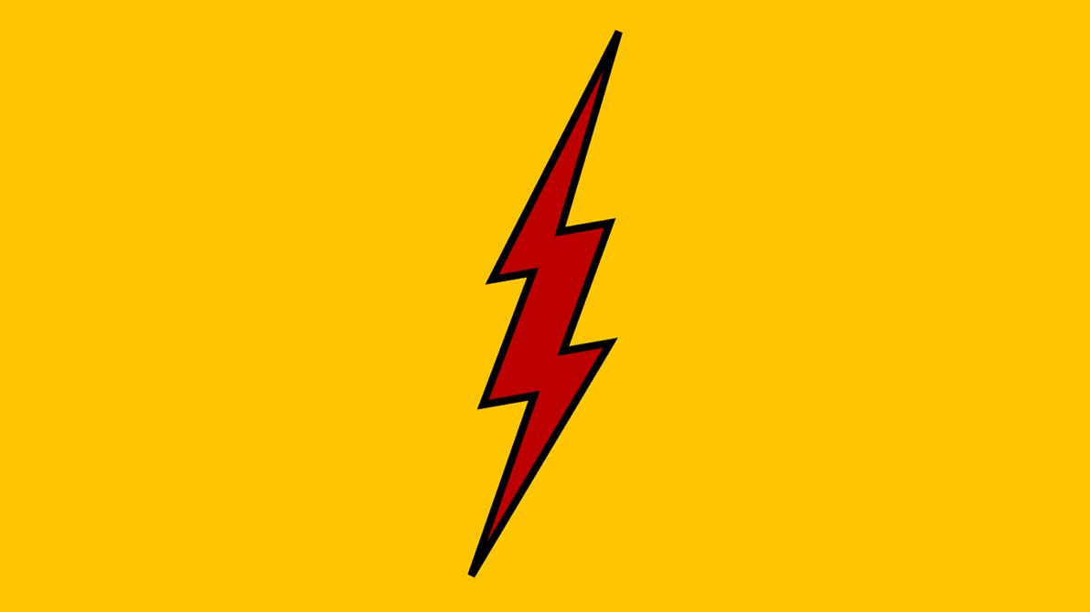 Description: A red and yellow lightning bolt on a yellow background with a black outline on the bottom of the image.