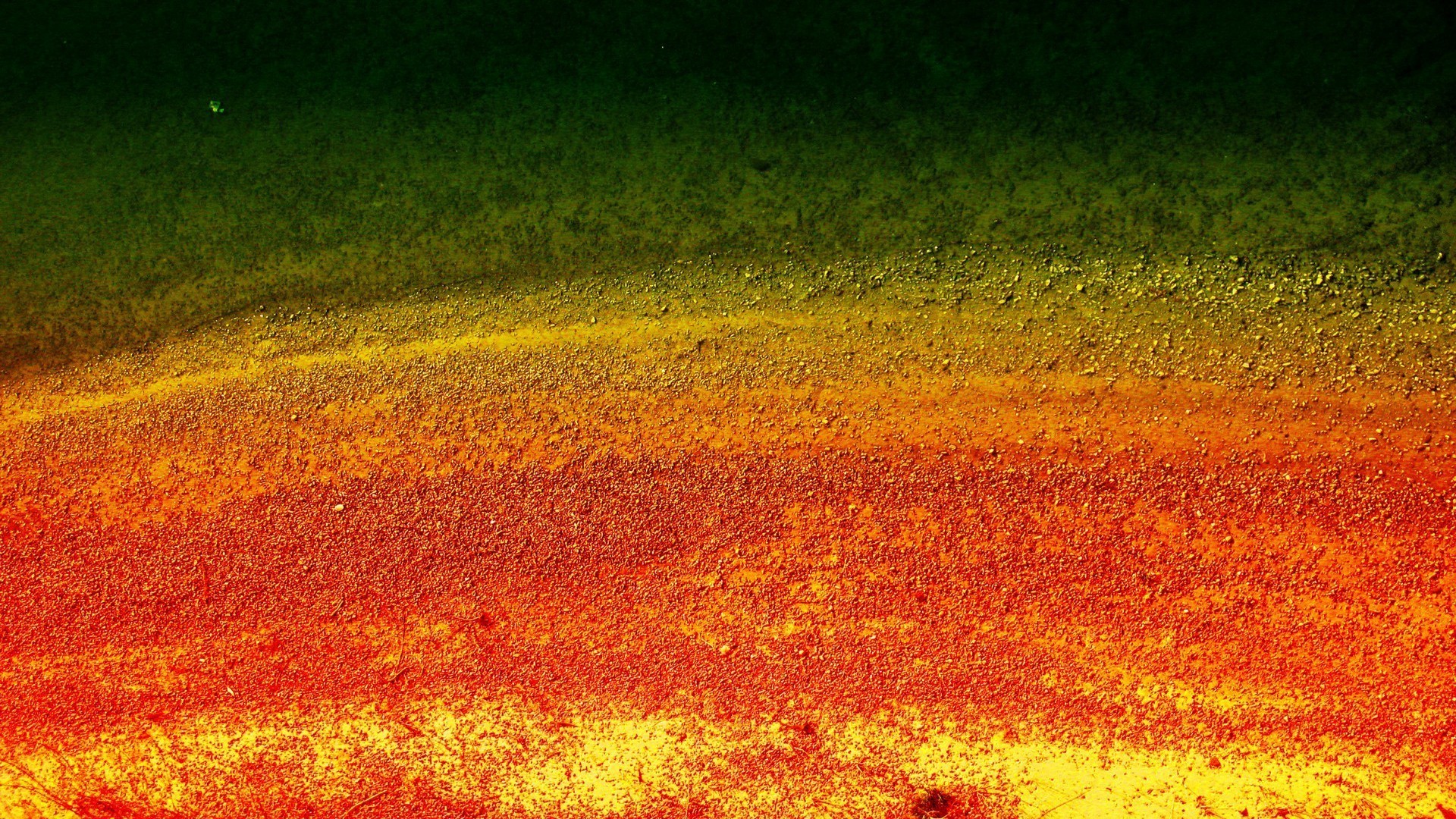 Description: A red and yellow substance is shown in this image of a liquid substance with a green substance in the middle.