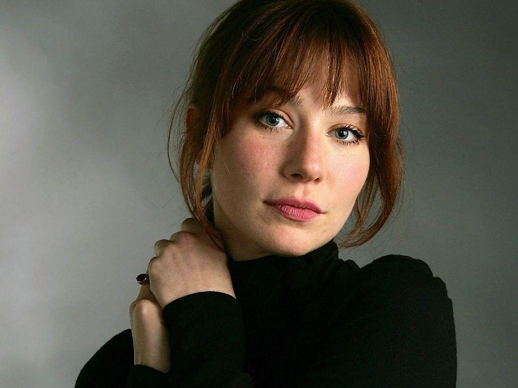 Description: A woman with red hair and a black shirt is posing for a picture with her arms crossed and looking at the camera.