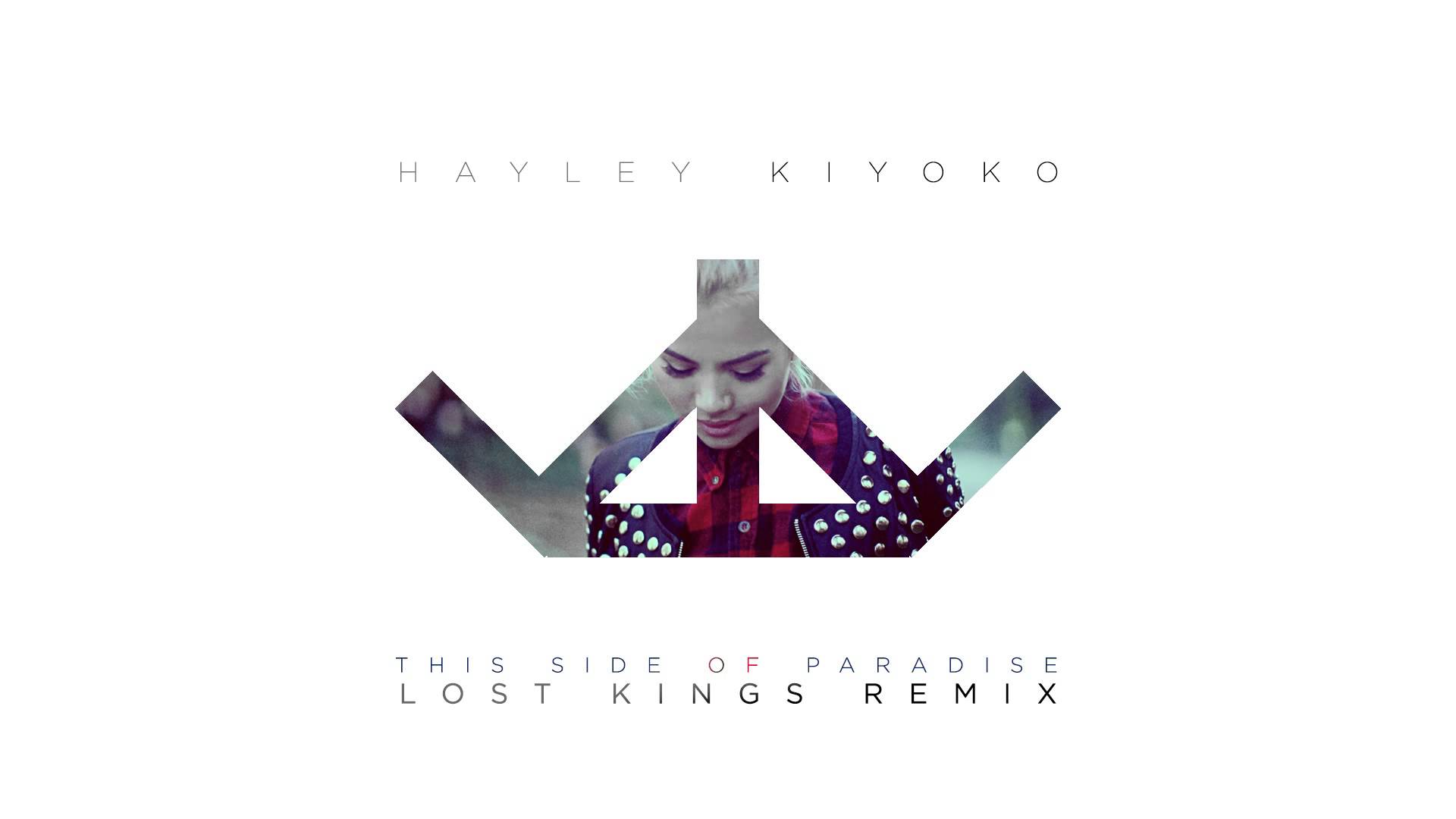 Description: A woman with a red hair and a purple shirt is standing in front of a white background with the words hayley kiyokoo.