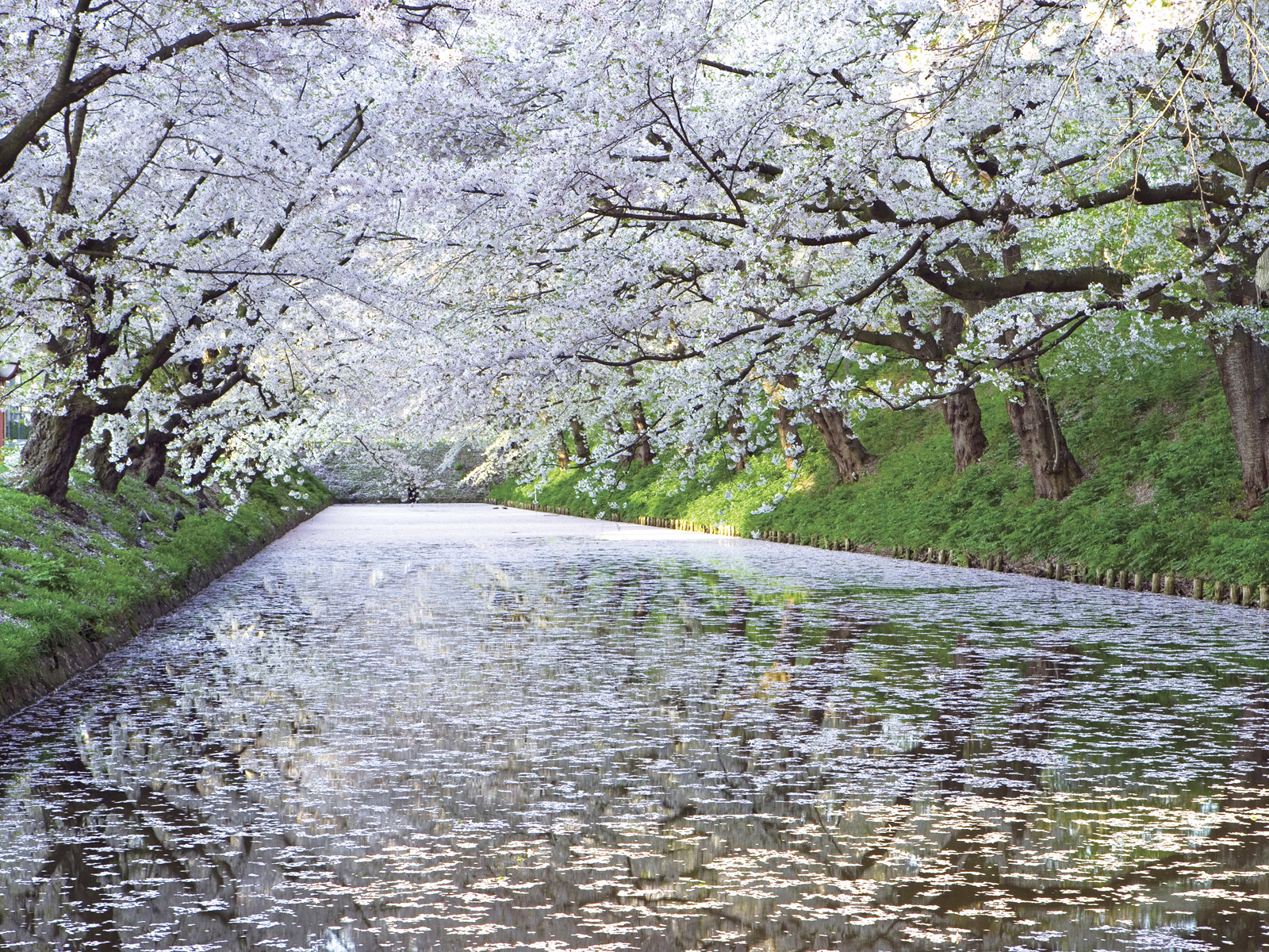 Description: A river with a bunch of trees lining it and a person walking down the side of it in the distance.