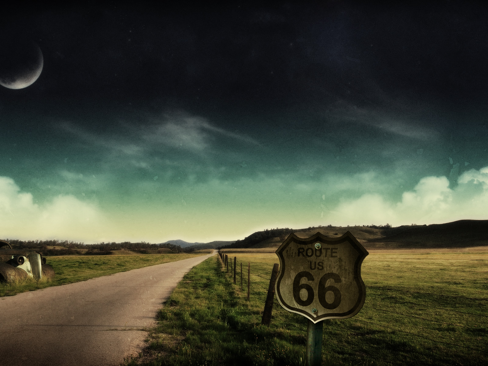 Description: A road sign sitting on the side of a road near a field of grass and a cow grazing on the side of the road.