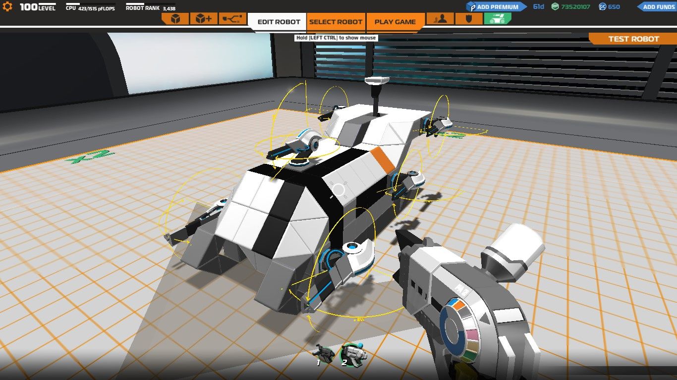Description: A computer generated image of a robot in a room with a computer screen showing a robot on the floor.
