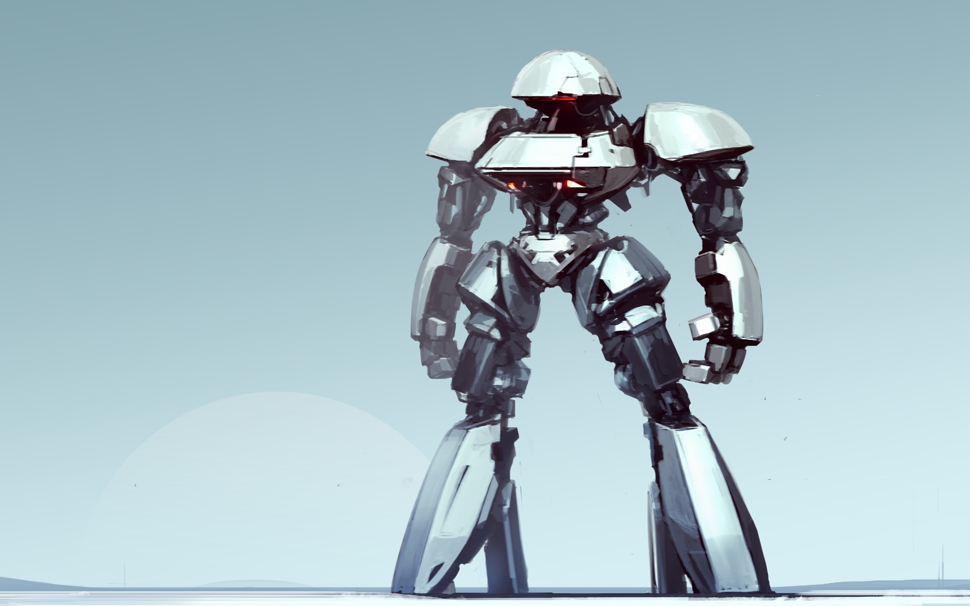 Description: A robot standing in the snow with its arms outstretched and eyes closed.