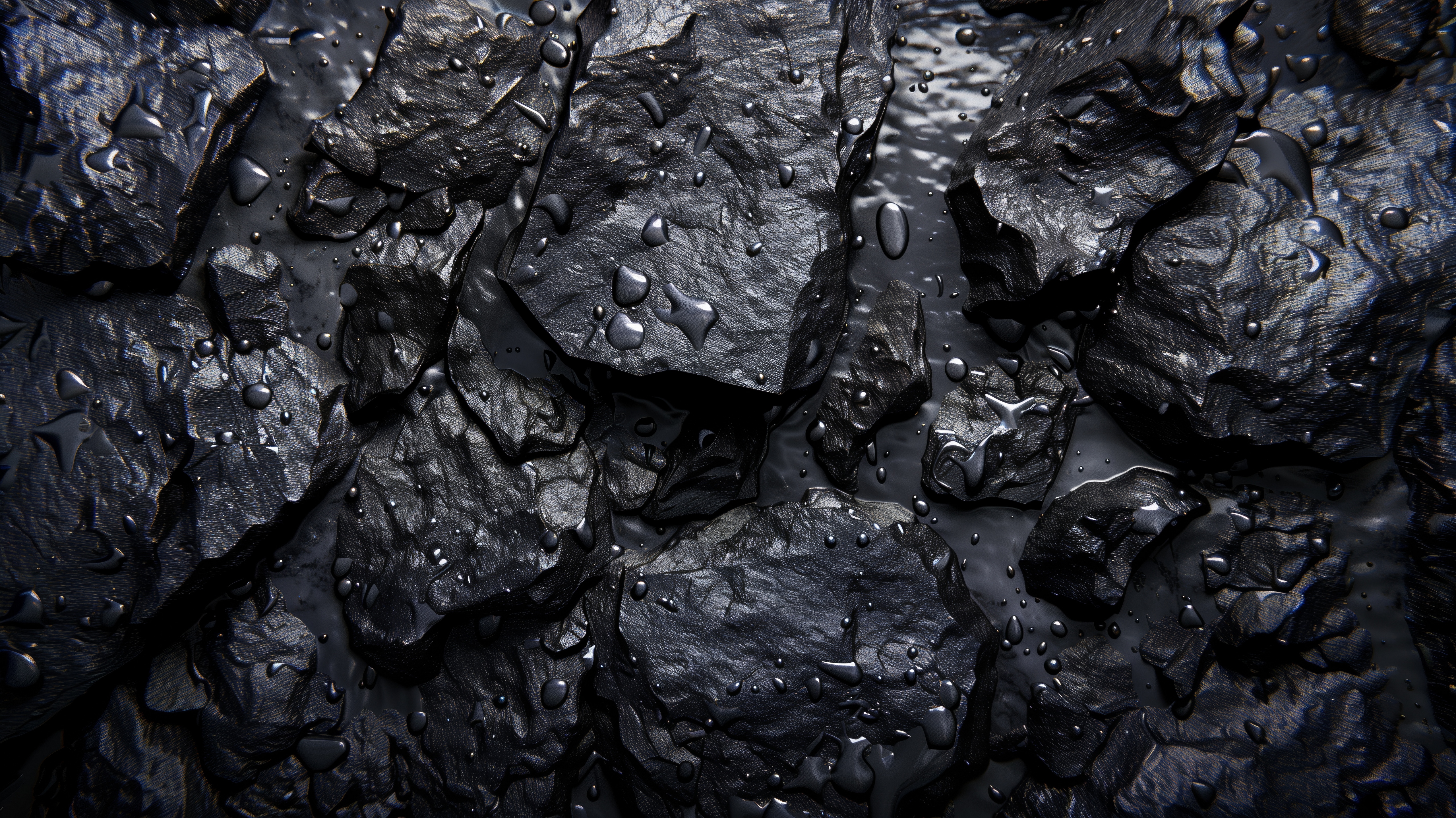 Description: A bunch of rocks with water drops on them and a blue sky in the background with a few clouds.